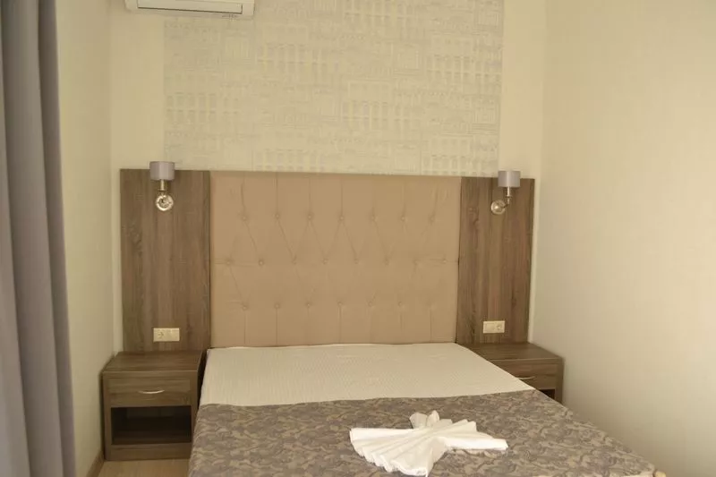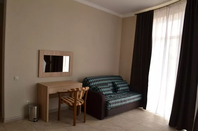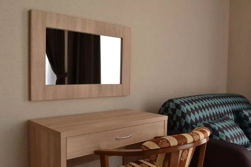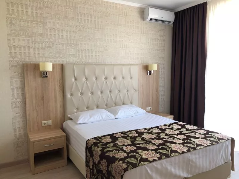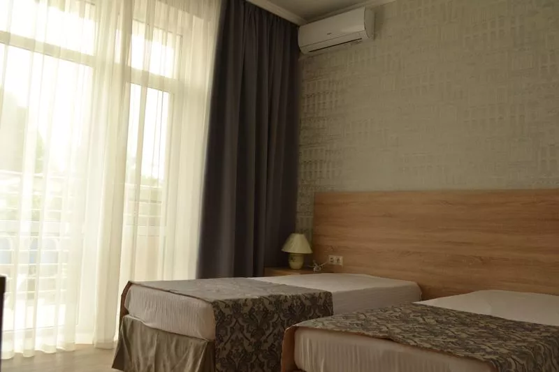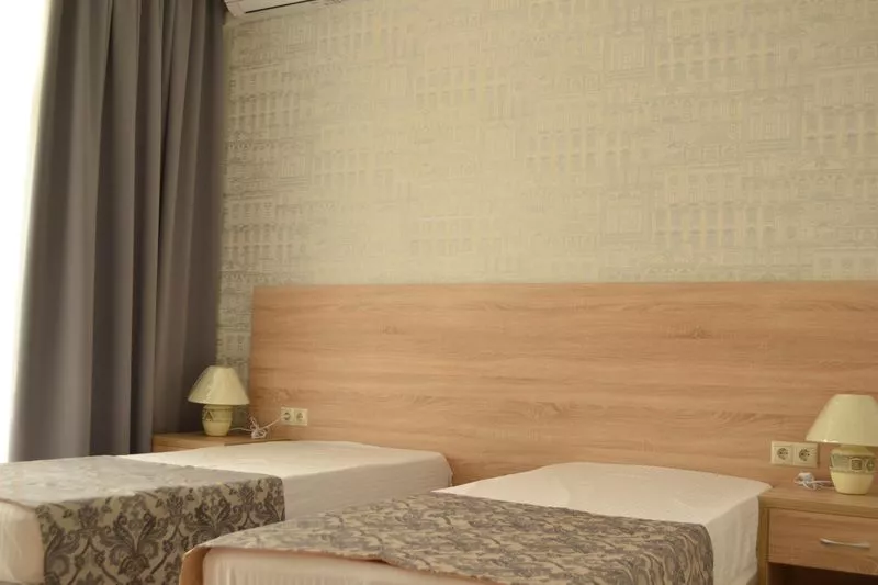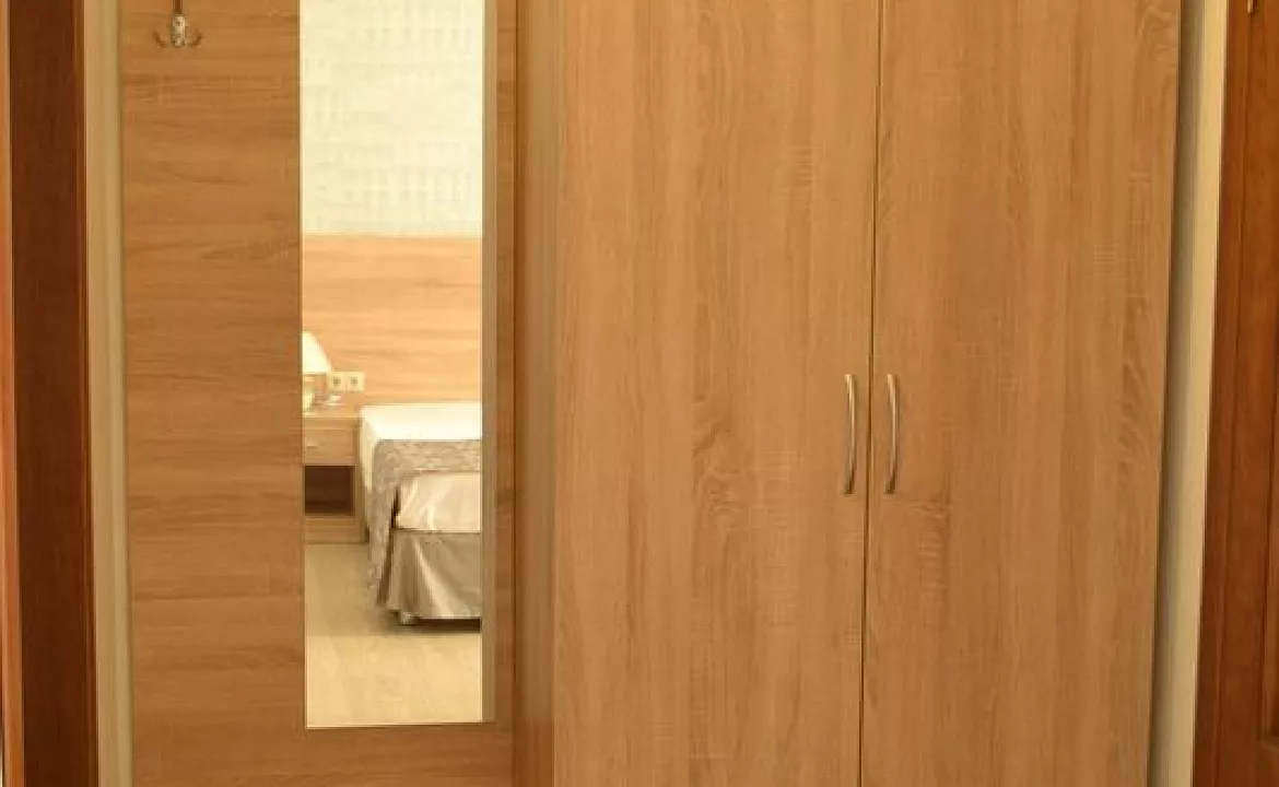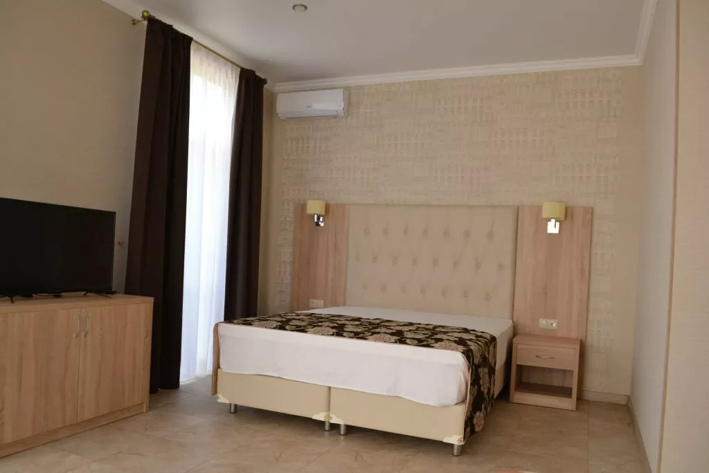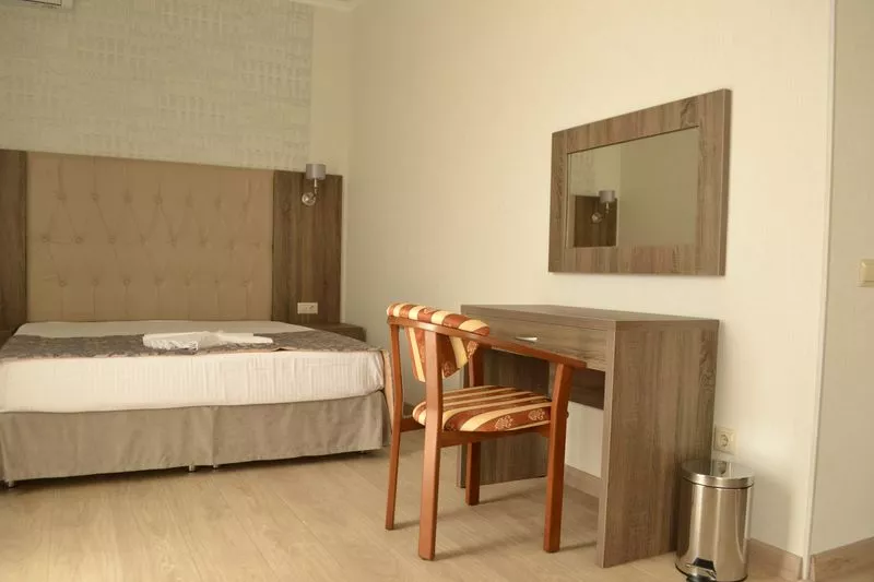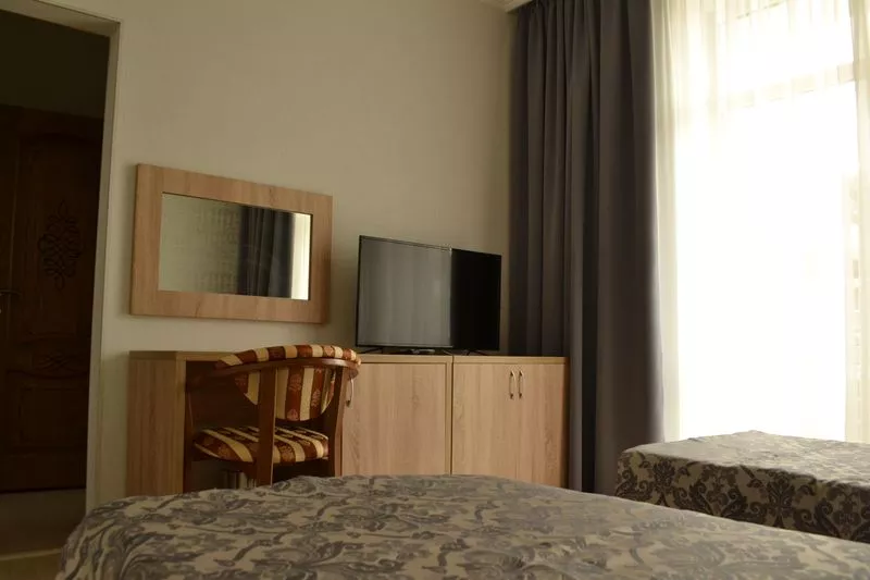 Мебель: односпальные или двуспальная кровати, стол, стулья, шкаф, прикроватные тумбочки, туалетный столик, прихожая, вешалка, зеркало. Удобства: кондиционер, холодильник, телевизор, цифровое ТВ, интернет, фен, балкон.