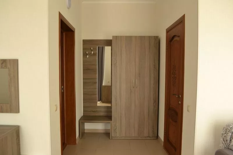 Мебель: двуспальная кровать, диван-кровать, стол, стулья, шкаф, прикроватные тумбочки, туалетный столик, вешалка, зеркало, прихожая. Удобства: кондиционер, холодильник, телевизор, цифровое ТВ, интернет, фен, балкон, терраса.