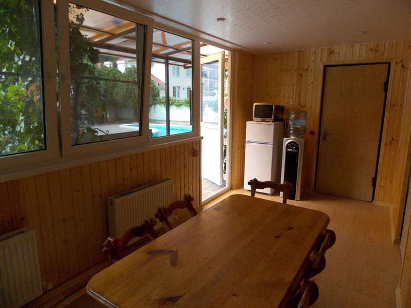 На территории гостевого дома: зелёный двор, беседка со стационарным мангалом, холодная/горячая вода, спутниковое ТВ, Wi-Fi интернет, места для отдыха, бассейн, сауна/баня, детская площадка, бесперебойная подачи воды в номерах. 2 общие кухни, оборудованные всей необходимой техникой для самостоятельного приготовления пищи. Закрытая парковка на территории.К услугам гостям предлагается прокат: велосипедов, палки для скандинавской ходьбы, настольный теннис, бадминтон, настольные игры, практика йоги.