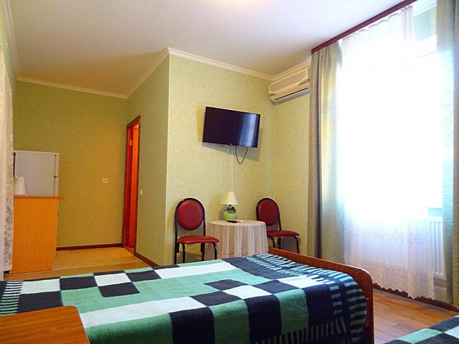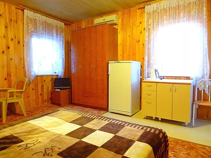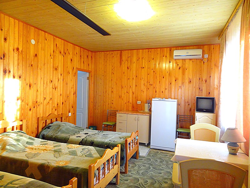 Мебель. односпальные или двуспальная кровати, шкаф, стулья, прикроватные тумбочки, стол, зеркало. Удобства: кондиционер, телевизор, холодильник, СВЧ (по требованию), эл. чайник, посуда.