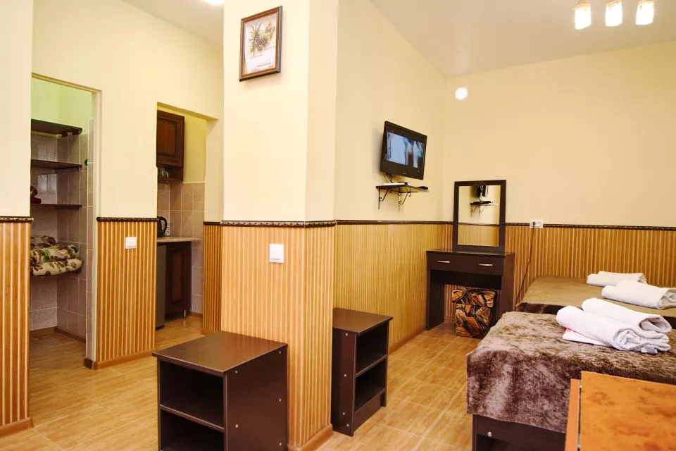 Мебель: диван-кровать, односпальная кровать, корпусная мебель, тумба для белья, двуспальная кровать, шкаф, тумбочки прикроватные. Удобства: сплит-система, холодильник, интернет, телевизор, цифровое ТВ, эл. чайник.