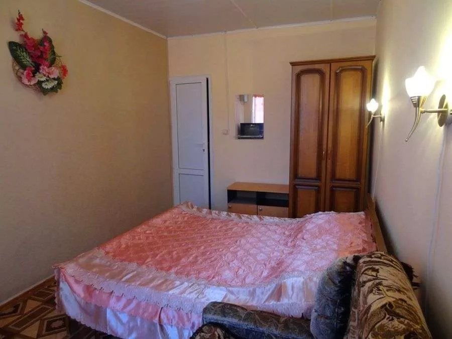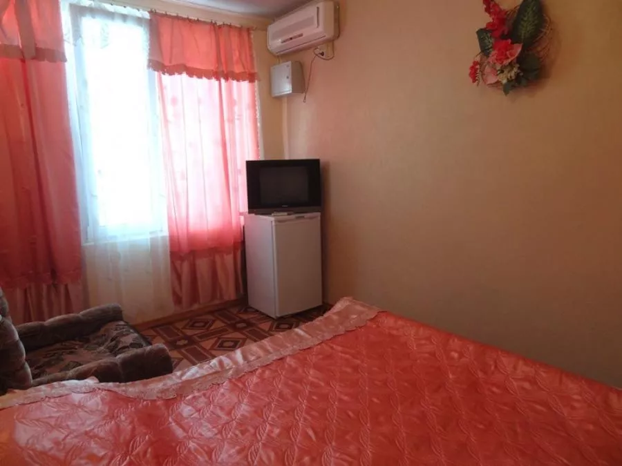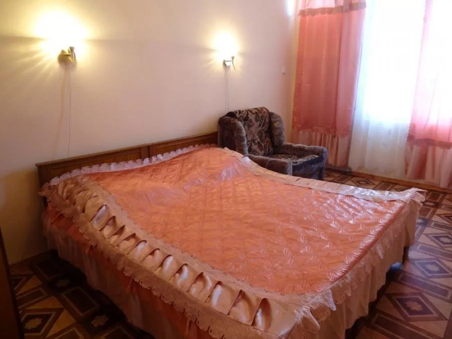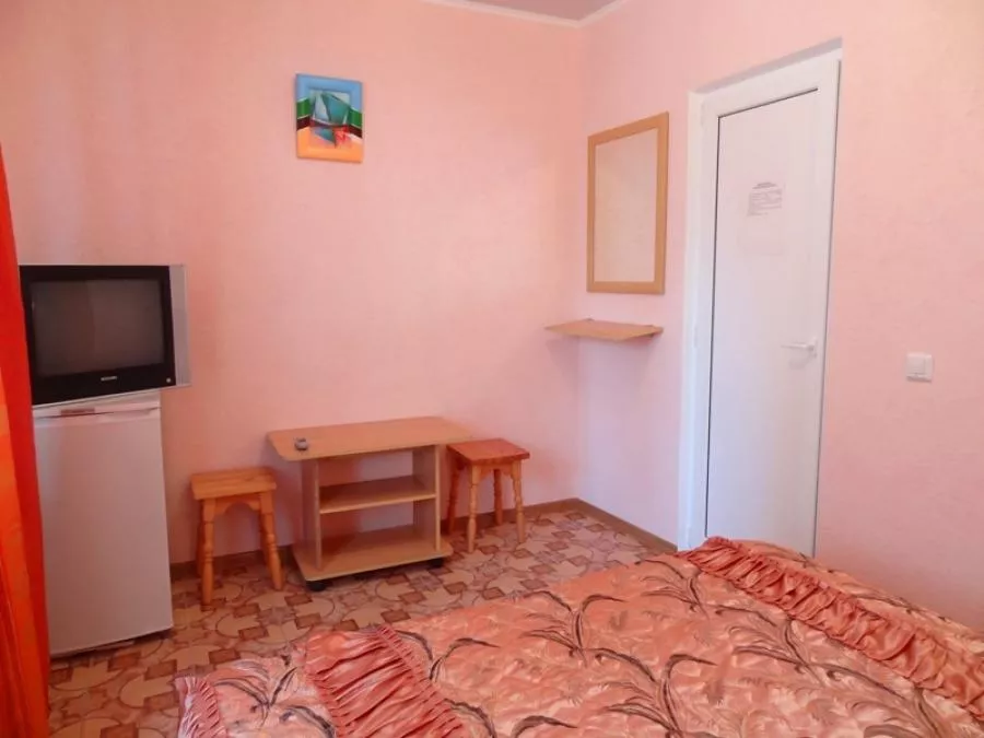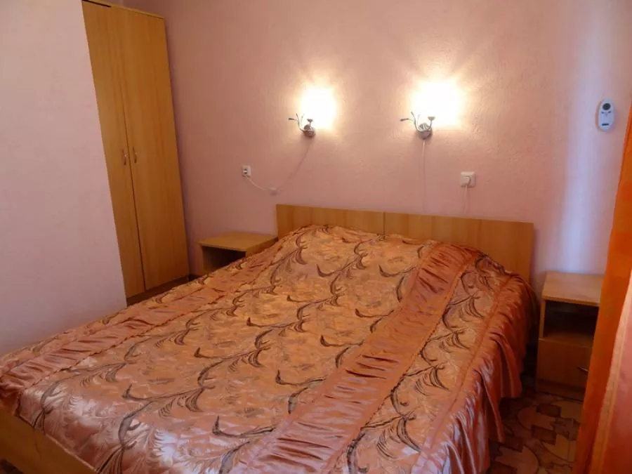 Мебель: двуспальная кровать, кресло-кровать, шкаф, стулья, прикроватные тумбочки, журнальный столик, зеркало. Удобства: сплит-система, телевизор, холодильник.