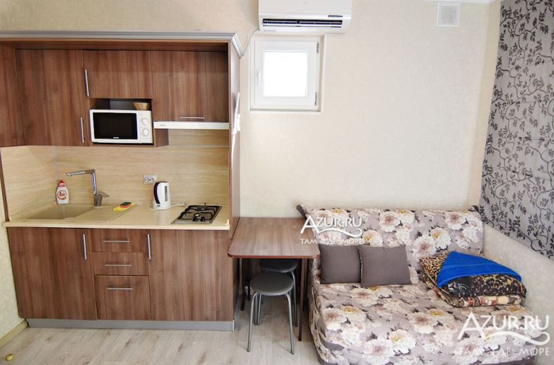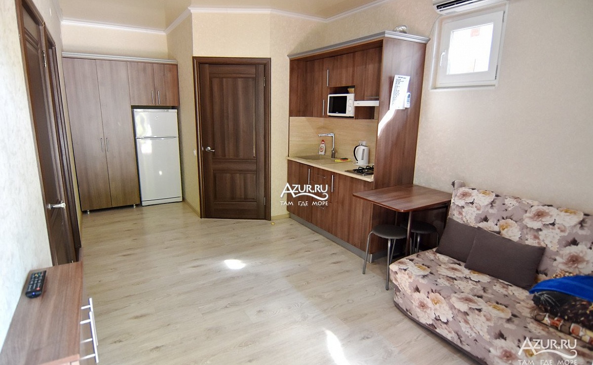 Мебель: односпальные двуспальная кровати, диван-кровать, стулья, шкаф, прикроватные тумбочки, стол, журнальный столик, комод, прихожая, вешалка, зеркало, кухонный гарнитур, обеденная зона. Удобства: кондиционер, холодильник, телевизор, СВЧ, эл. чайник, посуда, интернет, сейф, гладильная + утюг, мангал.