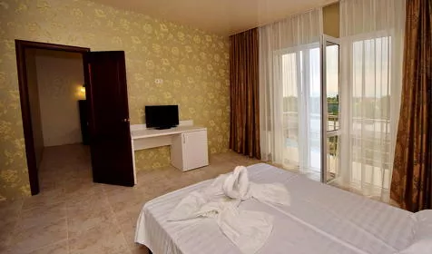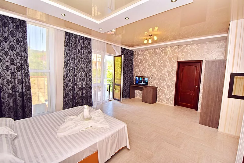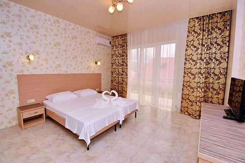 Двери гостевого дома открыты для гостей круглогодично, в межсезонье скидки на проживание до 50%. Номерной фонд гостевого дома Фортуна представлен комфортными СТАНДАРТами и ПОЛУЛЮКСами, уютными VIP и роскошными ЛЮКСами. В просторных номерах всегда есть возможность установки от 1-го до 4-х полноценных дополнительных мест. Все номера в европейском стиле с просторными и удобными балконами, с современной мебелью, кровати с ортопедическими матрасами, сплит-системы, холодильники, плазменные телевизоры и санузлы с фенами и средствами личной гигиены, всем что необходимо для комфортного отдыха. По запросу предоставляются детские кроватки и стульчики для кормления. Дети до 2- х лет без предоставления места - бесплатно.Еще один из многочисленных плюсов гостевого дома "Фортуна" - большая благоустроенная территория. Огромный бассейн 7х14 метров с подогревом, современной системой очистки воды, двумя зонами - детской и взрослой, водопадом. Во взрослой зоне бассейна есть гидромассаж, а в детской зоне аэромассаж - брызги фонтана с пузырьками воздуха приводят в восторг детишек. Для маленьких гостей от 3 до 16 лет есть безопасная, современная детская площадка с множеством игровых элементов. Зона отдыха с шезлонгами, столиками под зонтами, мангалом и прохладительными напитками во внутреннем дворе. Есть кухня для самостоятельного приготовления пищи, оборудованная всем необходимым, а так же собственная столовая на территории с питанием по заказному меню, профессиональные повара которой порадуют Вас кулинарными изысками. Хозяева гостевого дома "Фортуна" позаботились об отсутствии перебоев с горячей и холодной водой. Для гостей, приехавших на отдых на своем автомобиле имеется автостоянка во дворе под видеонаблюдением. Работает беспроводной интернет по технологии Wi-Fi.Приятный, лечебный климат, воздух, наполненный ароматом можжевеловых рощ, ласковое море, тенистые улицы поселка и множество цветов оставят незабываемые впечатления на целый год. Каждый найдет себе развлечение по душе: прогулки верхом и поездки на джипах по живописным окрестностям, посещение форелевого хозяйства, уникальный Старый парк, Дом вверх дном, Кастальская купель, экзотариум и океанариум - это только небольшая часть того, что ждет вас на отдыхе! В шаговой доступности от гостевого дома "Фортуна" (3-5 минут) находятся рынок, океанариум, экзотариум, магазины и кафе, банкоматы, салоны сотовой связи, набережная поселка со всеми развлечениями и инфраструктурой, и многое другое. Кроме того, неподалеку от гостевого дома находятся: Геленджикский дельфинарий - 15 км, аквапарк "Золотая бухта" - 10 км, Сафари-парк - 10 км, парк "Олимп" - 12 км.Уютные, комфортабельные номера в европейском стиле, отзывчивый, приветливый персонал и доброжелательная атмосфера гостевого дома "Фортуна" не оставят вас равнодушными, Вы приедете сюда снова!- пляж галечный - 5-7 минут- набережная - 5-7 минут