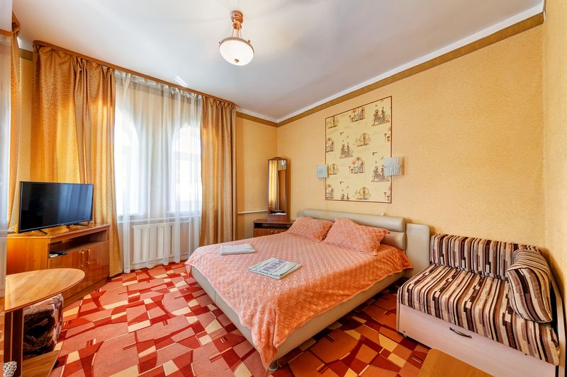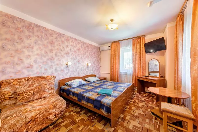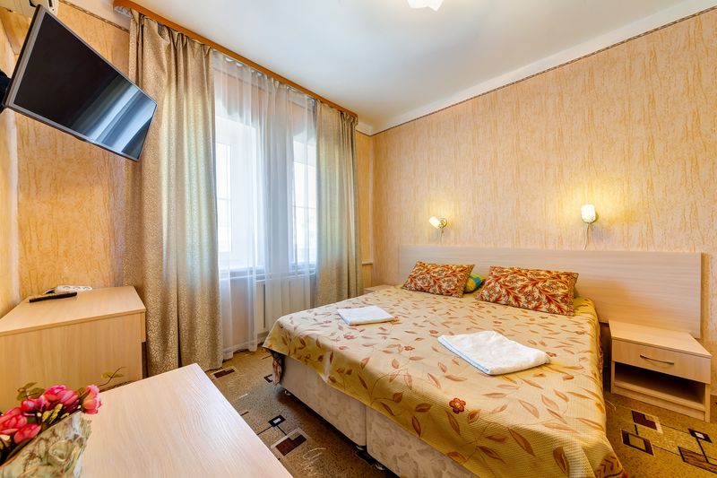 Мебель: односпальные или двуспальная кровати, диван-кровать, шкаф, прикроватные тумбочки. Удобства: сплит-система, телевизор, цифровое ТВ, Wi-Fi интернет, холодильник.
