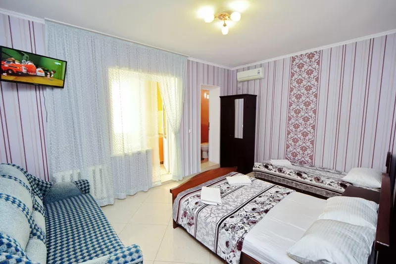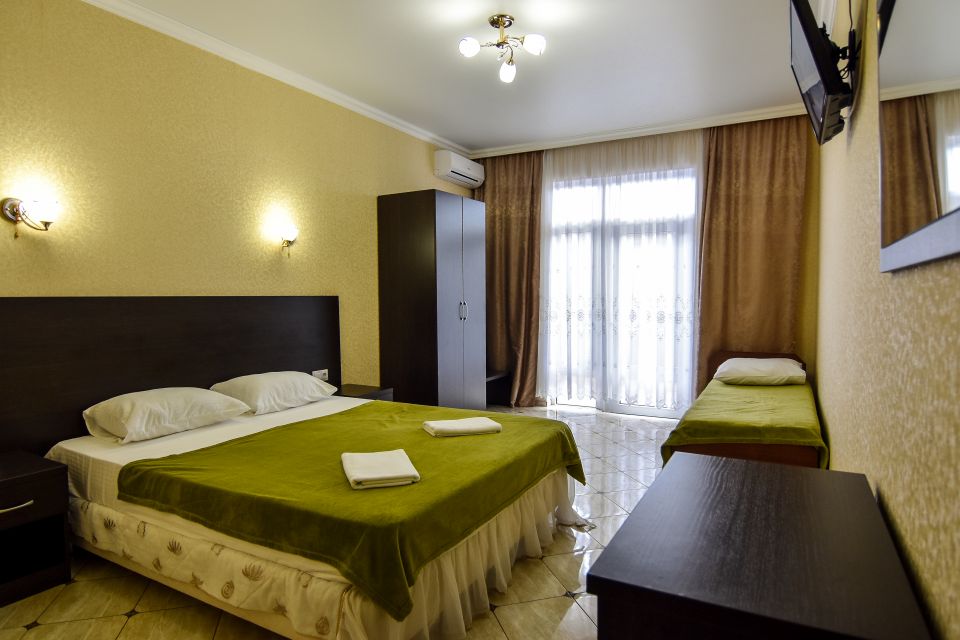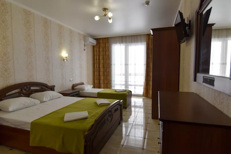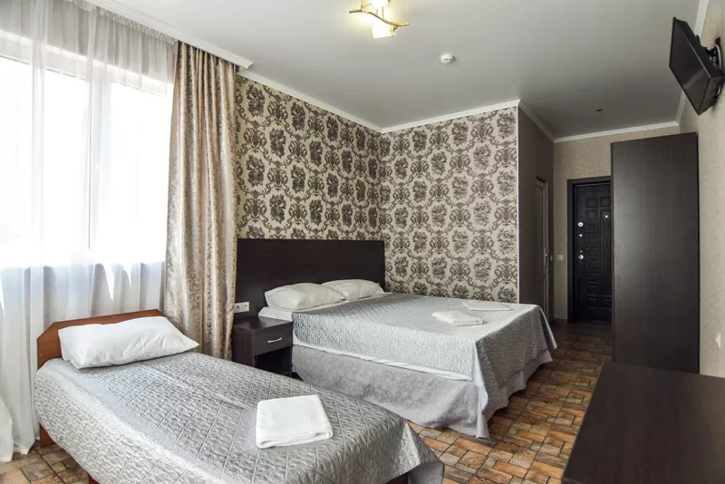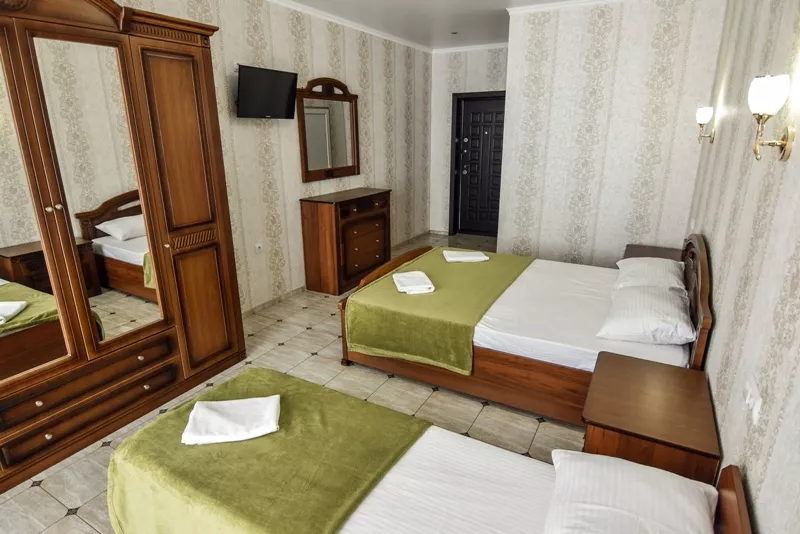 Мебель: 2 односпальные кровати, шкаф, прикроватные тумбочки, зеркало. Удобства: кондиционер, телевизор, цифровое ТВ, интернет, холодильник.