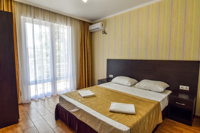 Мебель: двуспальная кровать, шкаф, стулья, прикроватные тумбочки, стол, зеркало. Удобства: кондиционер, телевизор, цифровое ТВ, интернет, холодильник.