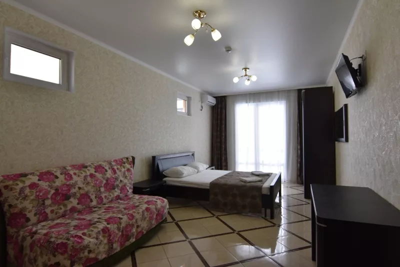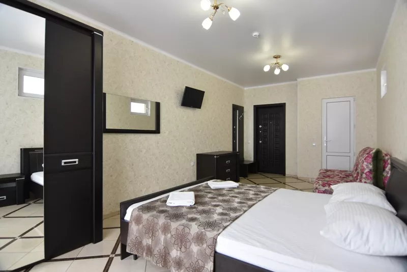 Мебель: двуспальная кровать, диван, шкаф, прикроватные тумбочки, комод, зеркало. Удобства: кондиционер, телевизор, цифровое ТВ, интернет, холодильник.