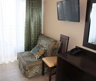 В номерах есть сплит-система, спасающая от летнего зноя, кабельное ТВ и бесплатный Wi-Fi, фен и эл. чайник, санузел, оборудованный душем и туалетом, а также вся необходимая мебель.