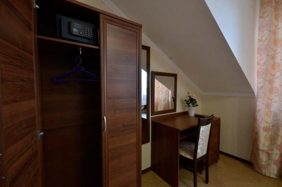 Мебель: односпальные и двуспальная кровати, шкаф, стулья, прикроватные тумбочки, туалетный столик, прихожая, вешалка, зеркало. Удобства: сплит-система, телевизор, спутниковое ТВ, холодильник, сейф, фен, посуда, балкон.