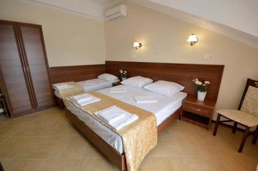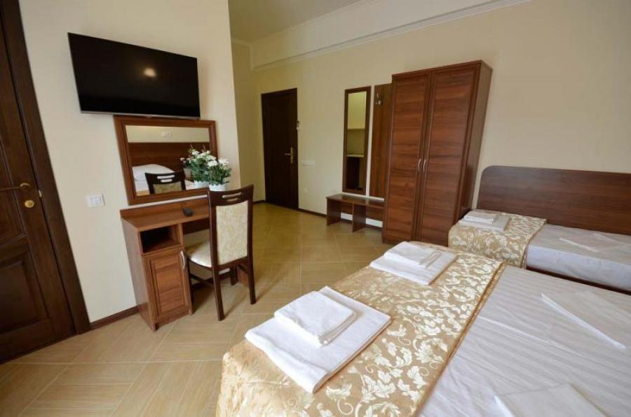 Мебель: односпальные и двуспальная кровати, стулья, прикроватные тумбочки, стол, прихожая, вешалка, зеркало. Удобства: сплит-система, телевизор, спутниковое ТВ, холодильник, сейф, фен, посуда, балкон.