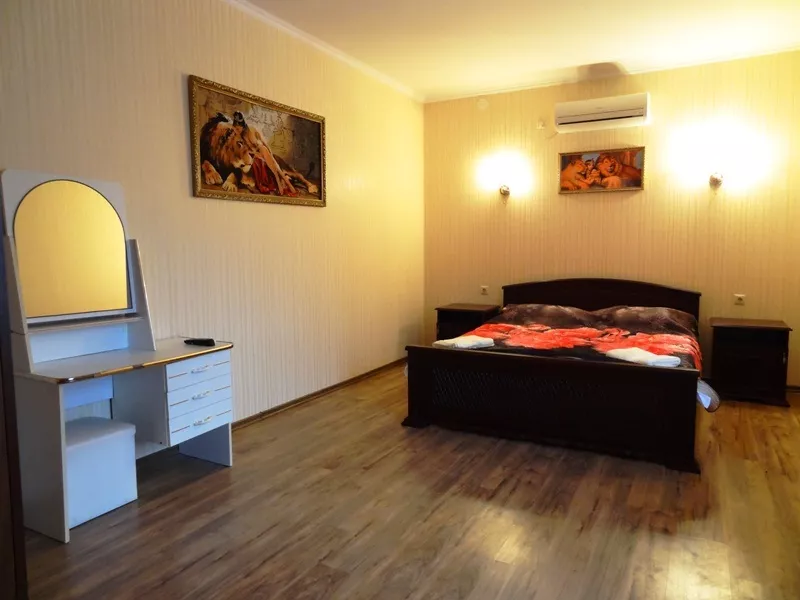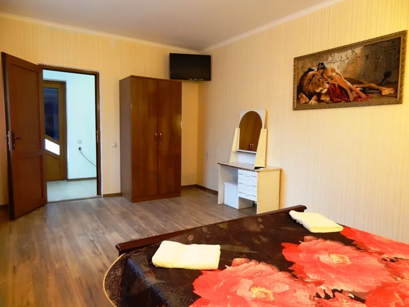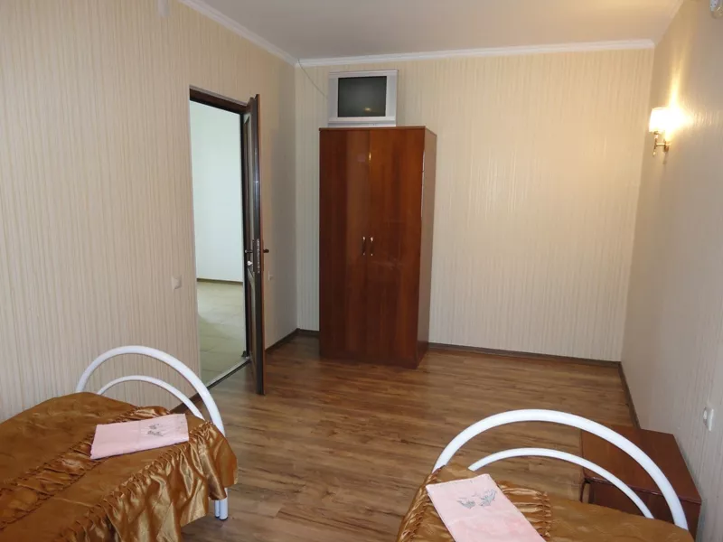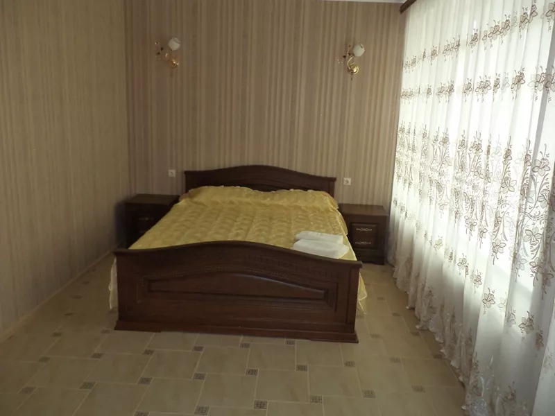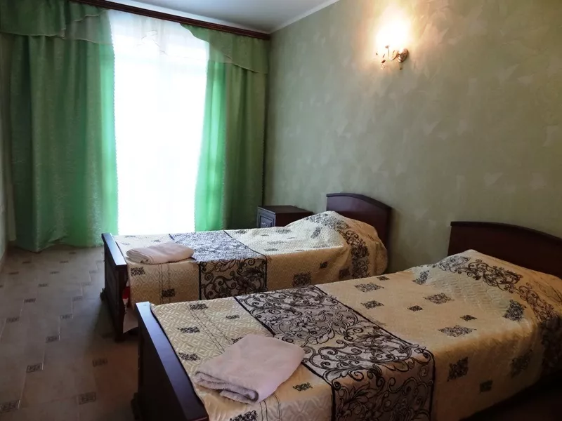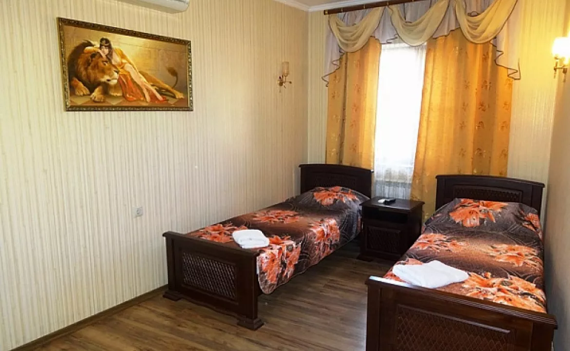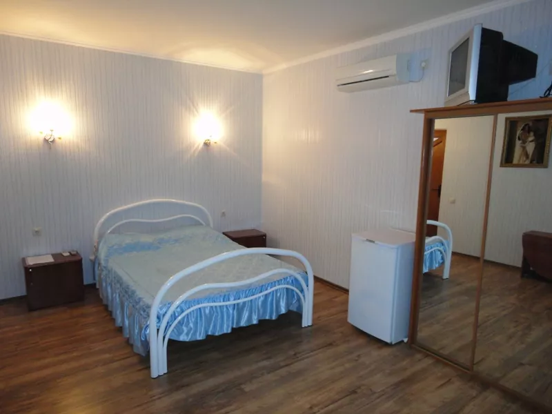 В отеле 16 номеров: 2х-комнатные, 1-комнатные и двухкомнатный номер с кухней. Все номера оснащены удобной современной мебелью, кондиционером, холодильником, телевизором. Холодная и горячая вода круглосуточно. На территории расположен открытый, современный бассейн размером 8,5м * 4,5м * 1,8м. Гидромассажеры, установленные под водой в бортиках бассейна, придадут Вашему купанию дополнительную пользу. Для любителей ночного купания имеется подводная подсветка. На территории бассейна расположены шезлонги для принятия солнечных ванн.