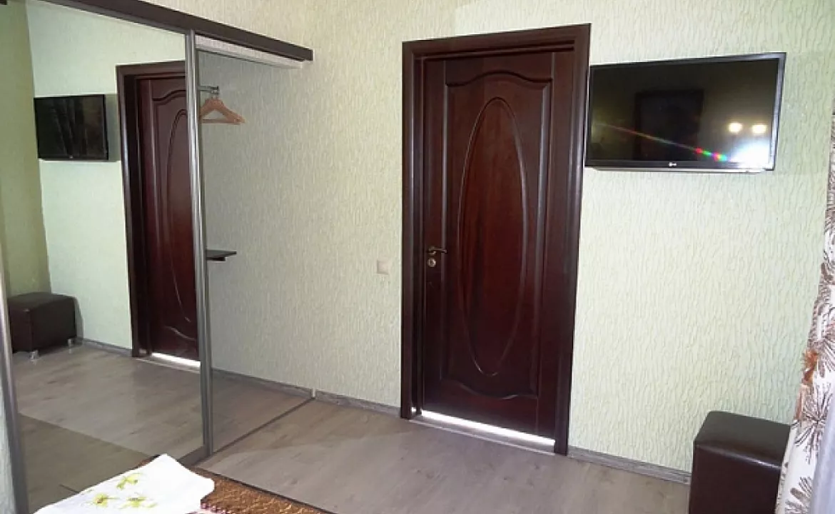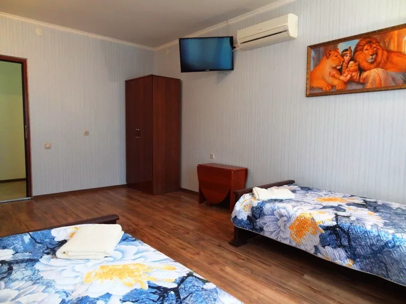 Мебель: односпальные и двуспальная кровати, шкаф, прикроватные тумбочки, вешалка, зеркало. Удобства: сплит-система, холодильник, телевизор.