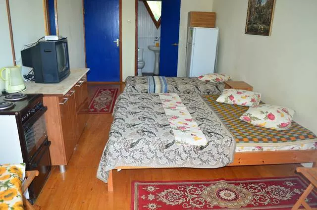 Номера делятся на «Эконом» класс и номера с удобствами. Для номеров «Эконом» предусмотрены общие удобства на этаже. Возле каждого номера на веранде имеется место отдыха со столом и стульями, и холодильник. Для каждого номера предоставляется набор необходимой посуды. В холле есть телевизор — «триколор». На первом этаже кухня. В номера повышенной комфортности есть телевизор, холодильник, кондиционер, комплект посуды, электрочайник, туалет, душ. Оборудовано место для приготовления пищи в номере. Есть гладильная доска, утюг. Горячая вода круглосуточно (солнечные коллекторы, электрические нагреватели воды).
