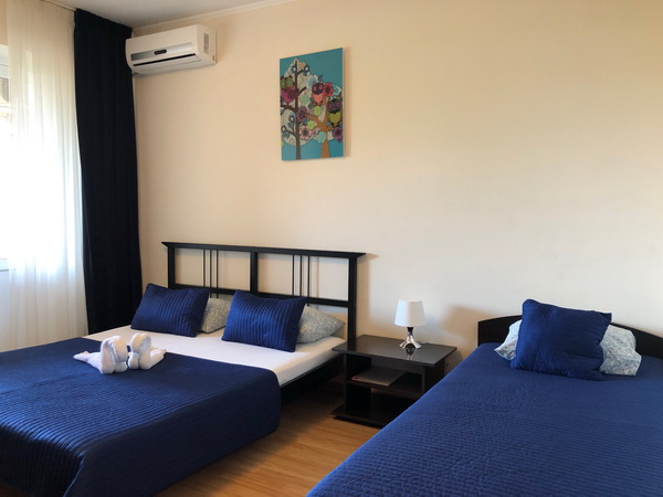 Мебель: односпальные или двуспальная кровати, кресло-кровать, шкаф, прикроватные столики, комод, зеркало. Удобства: вентилятор, кондиционер, телевизор, спутниковое ТВ, телефон, холодильник, эл. чайник, балкон.