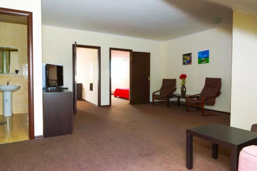 Гостевой дом осуществляет прием как индивидуальных туристов, так и больших организованных групп. Большая территория виллы позволяет организовать и провести любое праздничное или спортивное мероприятие. В самой Кринице есть детские лагеря, например, детская деревня "Криница", базы отдыха, санатории, пансионаты, а также гостиницы. Поэтому ваш отдых может быть уединенным, спокойным и размеренным как на самой вилле WELCOME, так и насыщенный, активный в ее окрестностях.Приглашаем Вас провести отпуск или выходные на территории виллы WELCOME. Во всех номерах комплекса WELCOME есть современная европейская мебель, ванная комната, сплит-система, плазменный телевизор со спутниковым ТВ, терраса, холодильник. В аппартаментах на 1 этаже есть оборудованная кухня. Номера выполнены в разных цветовых гаммах, поэтому Вы можете выбрать именно тот цвет, который Вам наиболее нравится. Возможна установка дополнительных кроватей, как для самых маленьких, так и для взрослых.