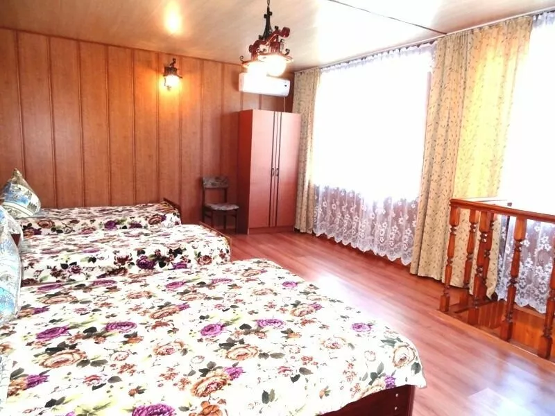 Перед домом бесплатная стоянка для авто. На территории WI-FI, беседки, мангал, большая столовая-кухня для самостоятельного приготовления пищи, детская горка для малышей, детский деревянный домик для игр, прудик с рыбками, водопадик, более 50 кустов роз и других цветов, благоприятная обстановка во дворе, гостеприимные хозяева. За дополнительную плату - трансфер, услуги парикмахера, массажиста, маникюр, педикюр с вывозом на дом, стирка личных вещей.- пляж песчаный - 7 минут