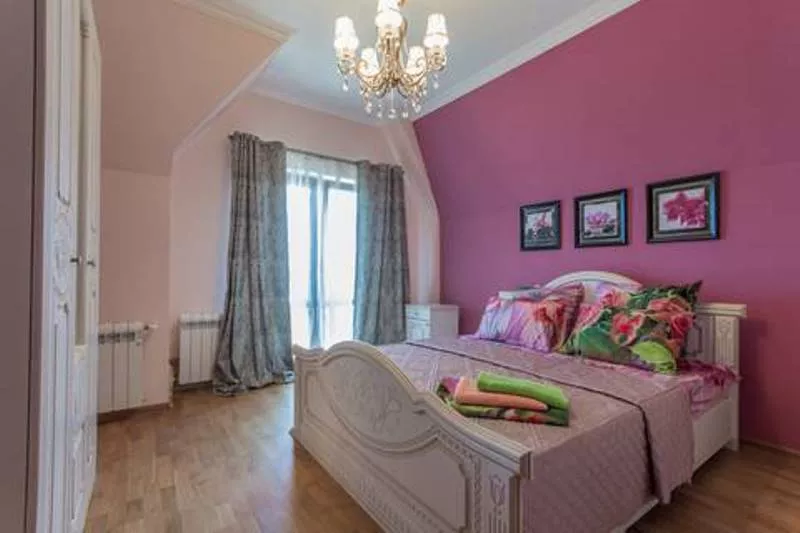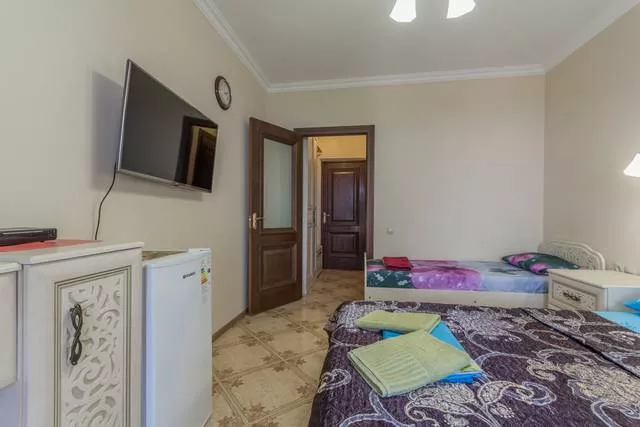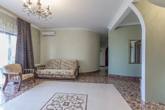 Мебель: 2 односпальные и 2 двуспальные кровати, диван-кровать, стулья, пуфики, шкаф, прикроватные тумбочки, журнальный столик, комод, вешалка, зеркало. Удобства: кондиционер, холодильник, телевизор, спутниковое ТВ, интернет, фен, балкон, сейф.