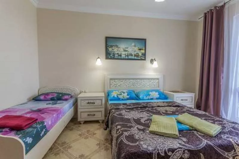 Отдыхали в этом гостевом доме в августе. Две семьи. Комфорт на 3м-семейная пара, +комфорт на третьем 2 сына, стандарт 2х комнатный на 2м-семья из 3 человек. И мы и они с собаками. Выбирала по интернету. Списались с Сергеем, забронировали. По определенной цене. И Сергей обещал, что она не изменится. Но за 2 недели позвонил и сказал, что цена существенно выросла. Я, конечно, понервничала. Немного была в шоке, так как у Сергея меняется настроение , как буд то в нем живет 2 человека. Один жесткий, ...