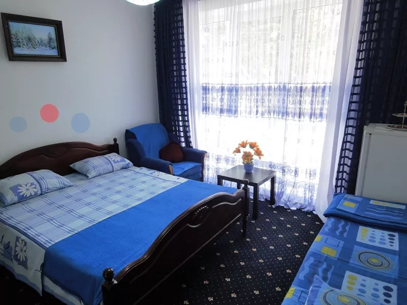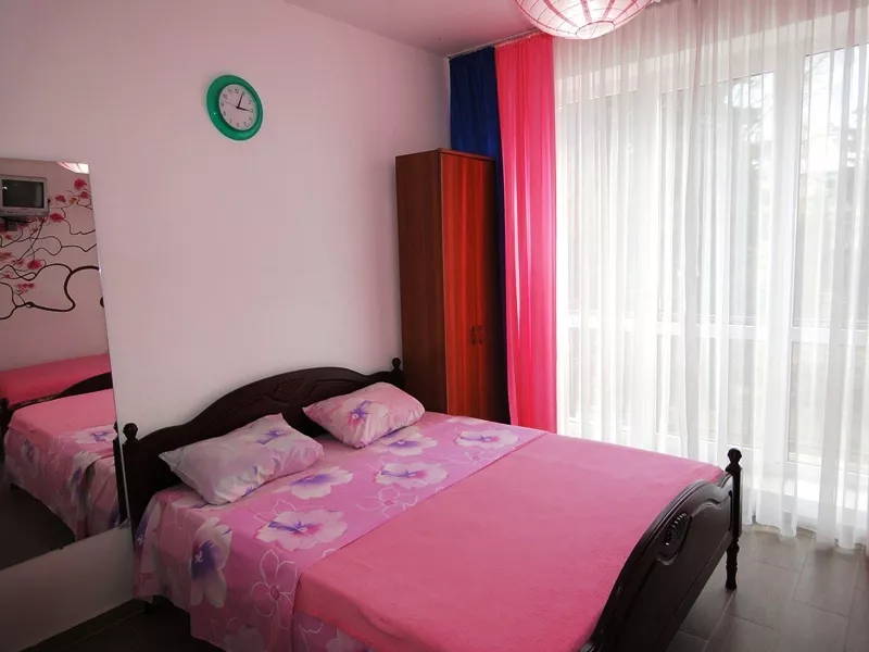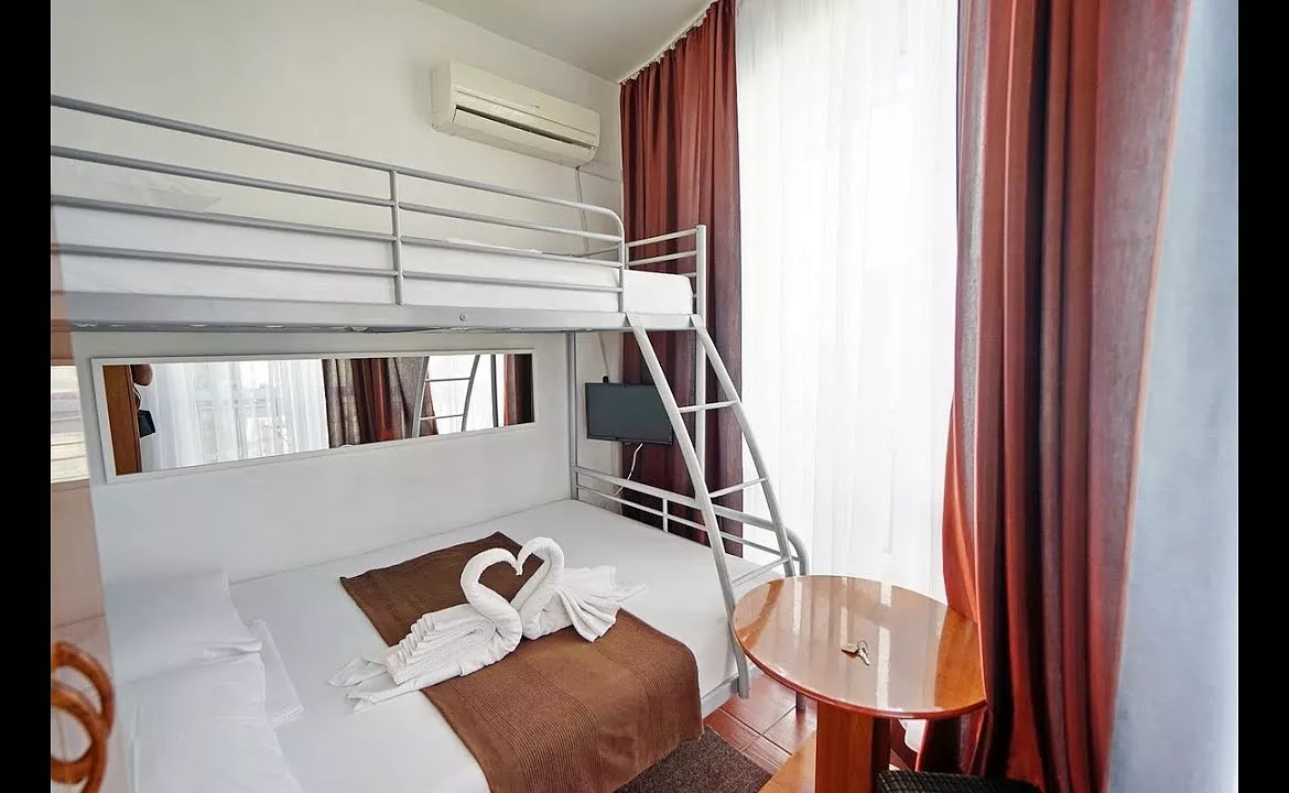 Брали номер с террасой(на которой есть холодильник) Комната на 4 человека. Душ, туалет всë в номере. Всë в шаговой доступности. От 3 до 10 минут до нужной точки. Персонал порядочный