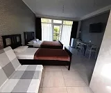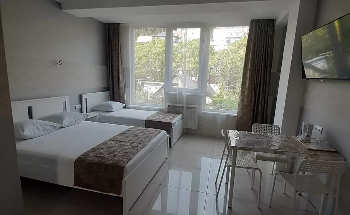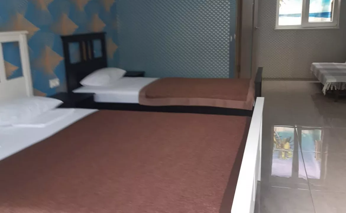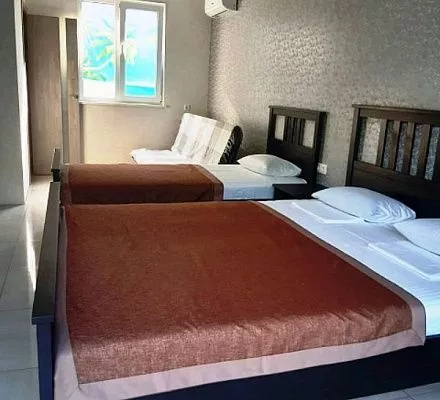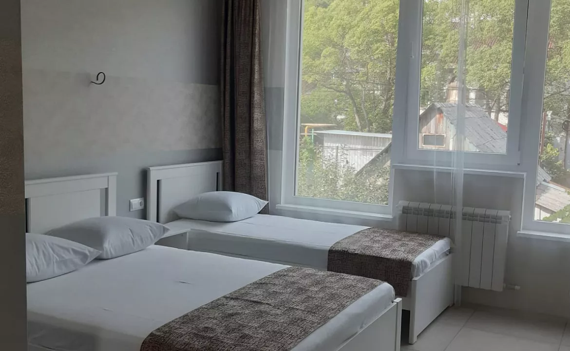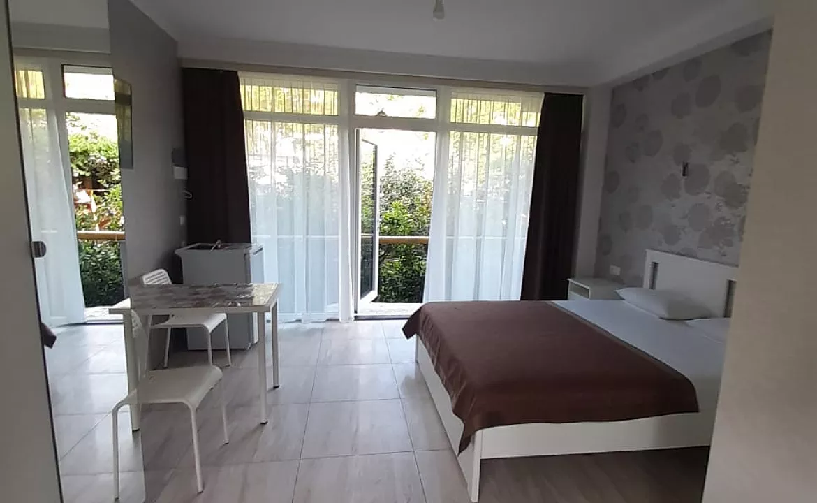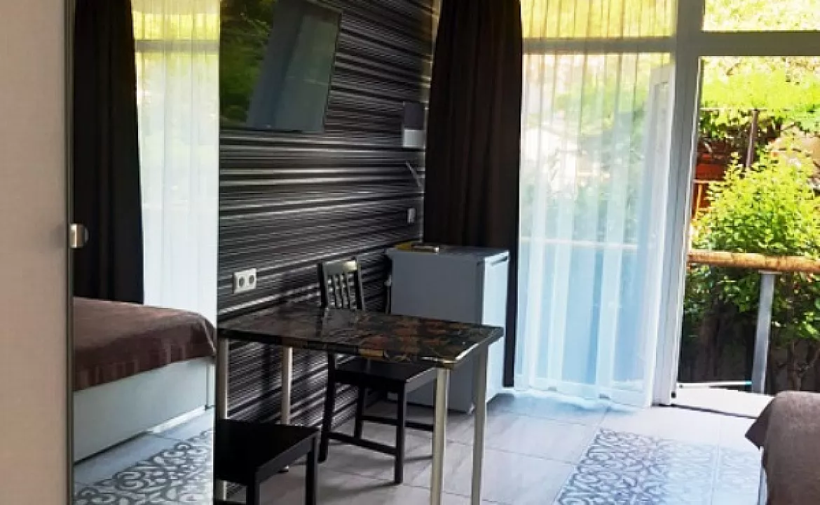 Территория: небольшая, но уютная. Много зелени. Есть крытая беседка. Для авто имеется стоянка перед домом и во дворе. Инфраструктура: в шаговой доступности есть все необходимое — магазины, кафе, столовые. До аквапарка «Морская звезда» минут 10 ходьбы, здесь же рядом дельфинарий и океанариум. В 900 м от дома находится знаменитое Свирское ущелье с водопадами. Дополнительно: в доме работает Wi-Fi. Есть принадлежности для глажки вещей и стиральная машинка (загрузка платная). Курить можно в специально отведенном месте. Жилье бронируется по телефону, нужно внести предоплату — за 1 сутки проживания. - пляж галечный - 1-2 минуты