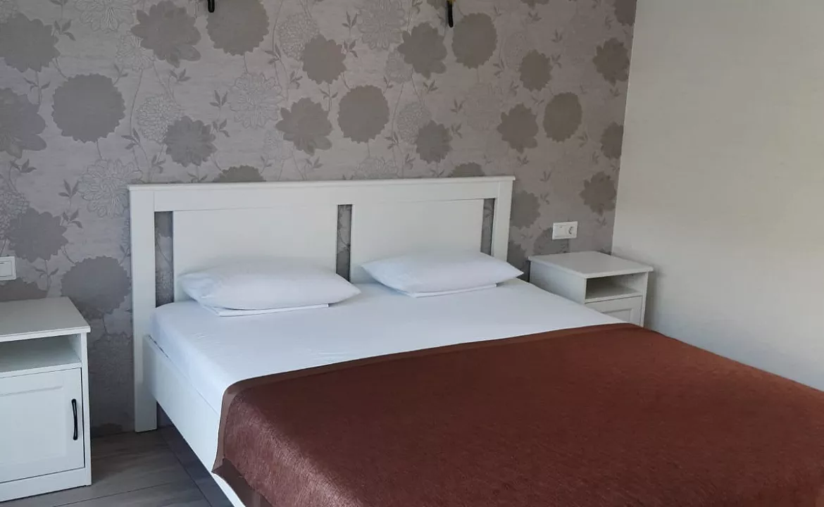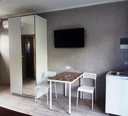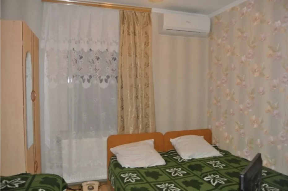 Мебель: двуспальная кровать, шкаф, зеркало. Удобства: кондиционер, холодильник, телевизор, спутниковое ТВ, эл. чайник, посуда, интернет.
