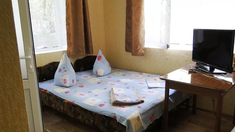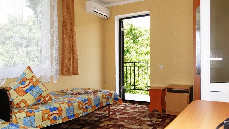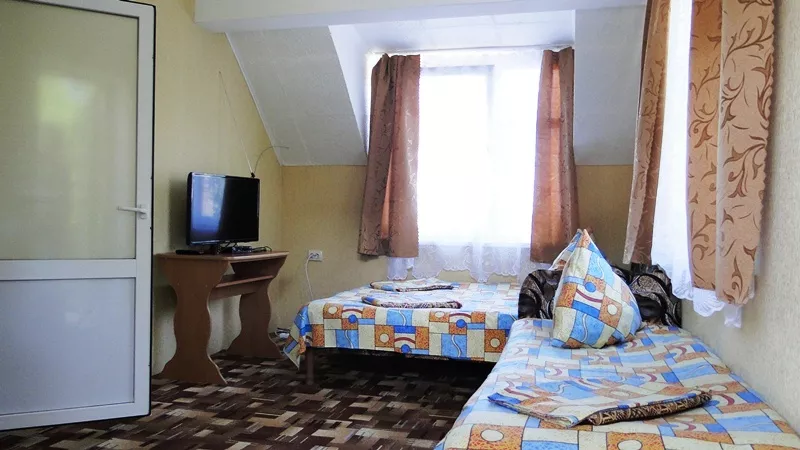 Мебель: односпальные или двуспальная кровати, шкаф, прикроватные тумбочки, журнальный столик, зеркало. Удобства: вентилятор, телевизор.