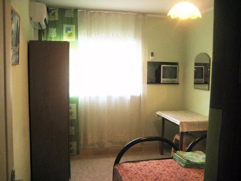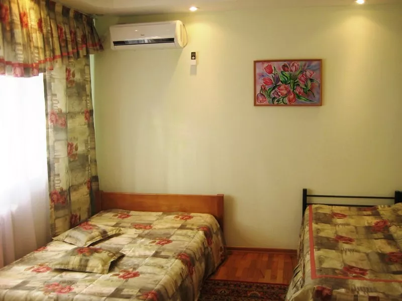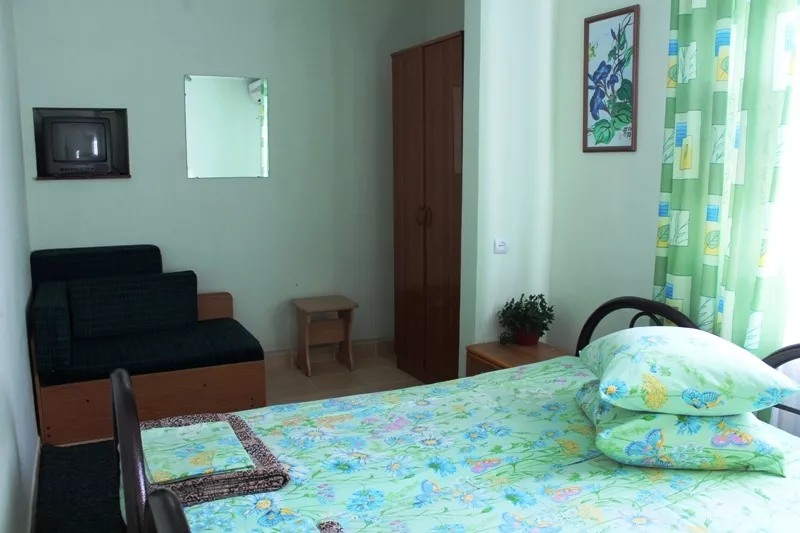 Мебель: односпальные или двуспальная кровати, шкаф, стулья, прикроватные тумбочки, стол, зеркало. Удобства: кондиционер, телевизор, балкон (наличие уточнять).