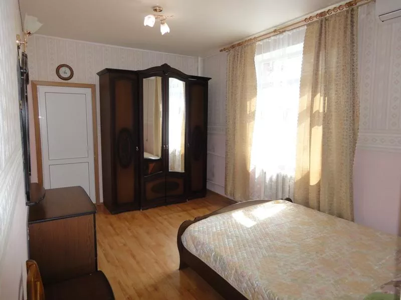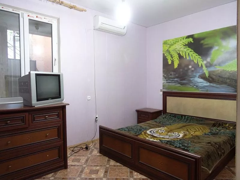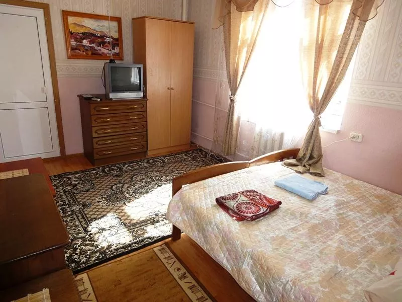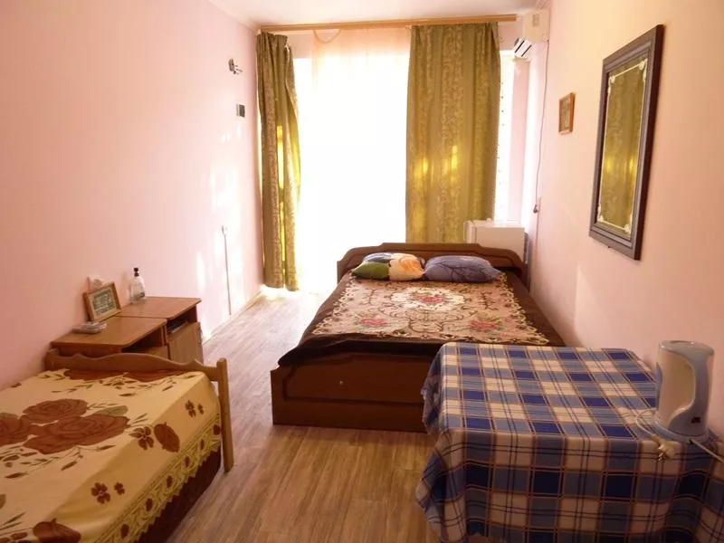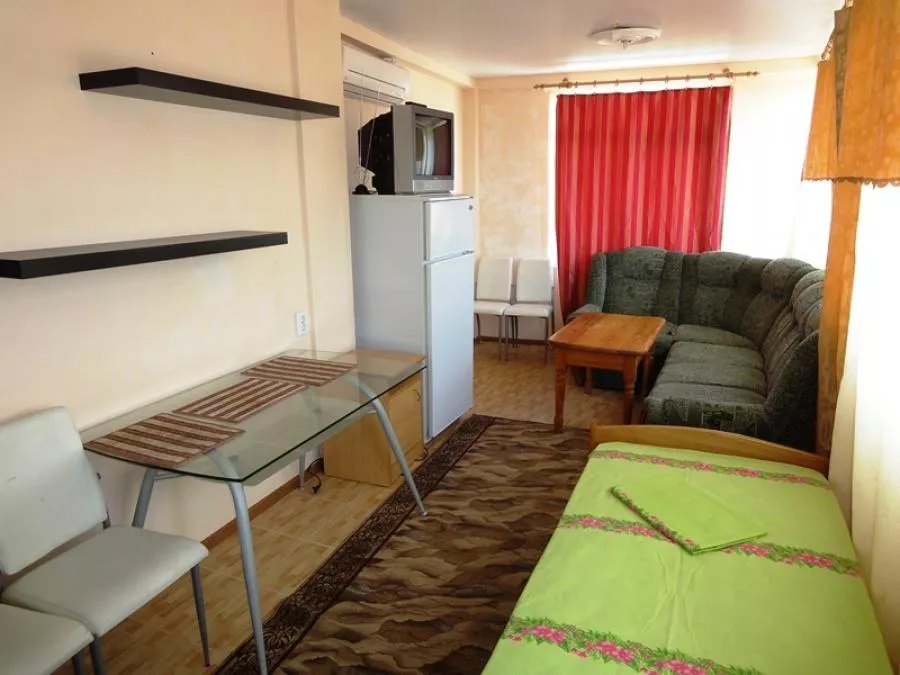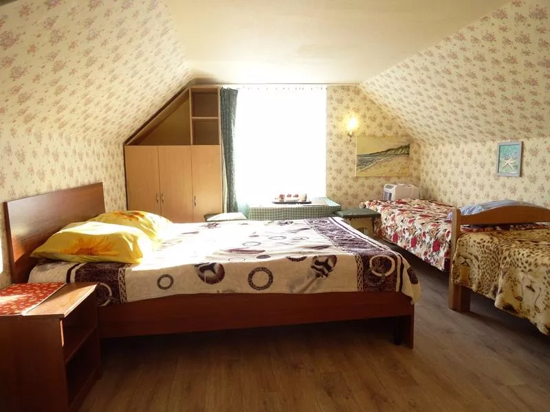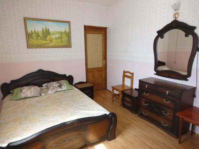 Мебель: односпальные или двуспальная кровати, диван-кровать, шкаф, стулья, прикроватные тумбочки, журнальный столик, зеркало. Удобства: кондиционер, холодильник, телевизор, эл. чайник, посуда, балкон.