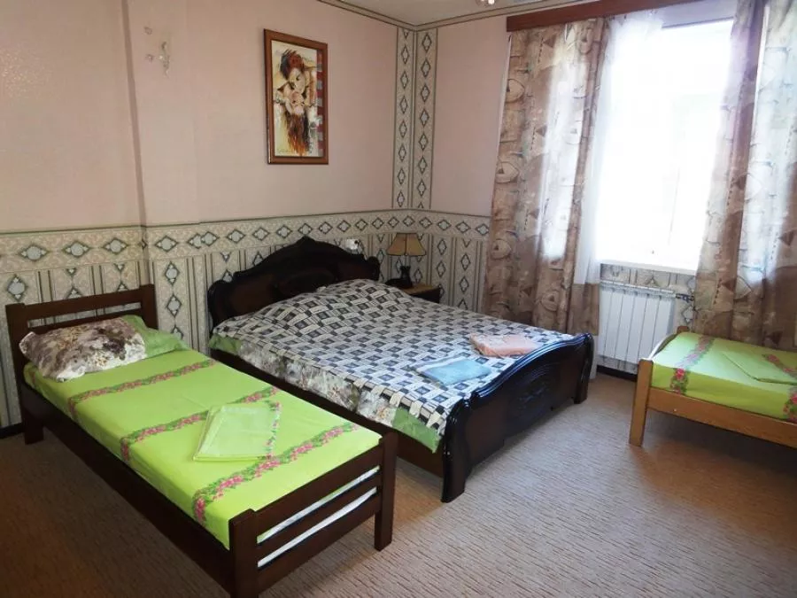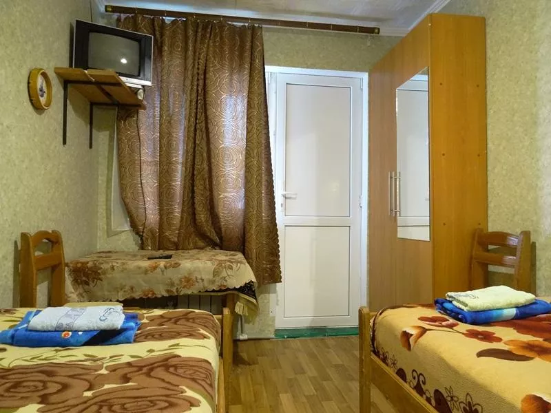 Мебель: односпальные кровати, шкаф, стулья, стол, вешалка, зеркало. Удобства: вентилятор, холодильник (на этаже), телевизор, посуда, балкон.
