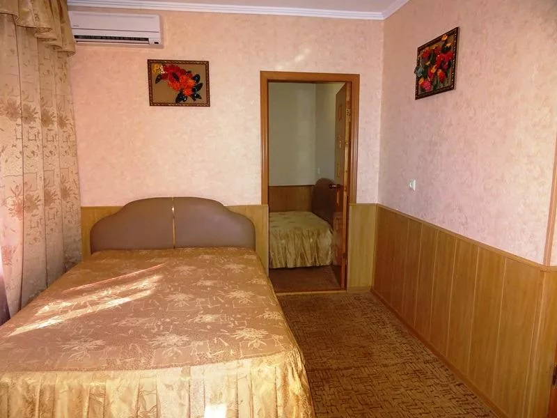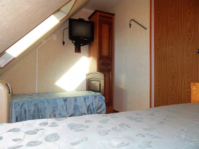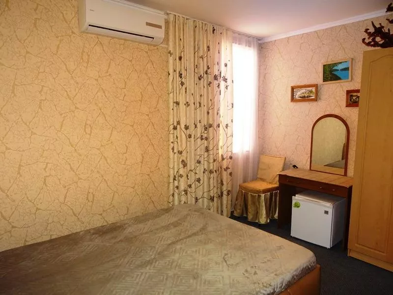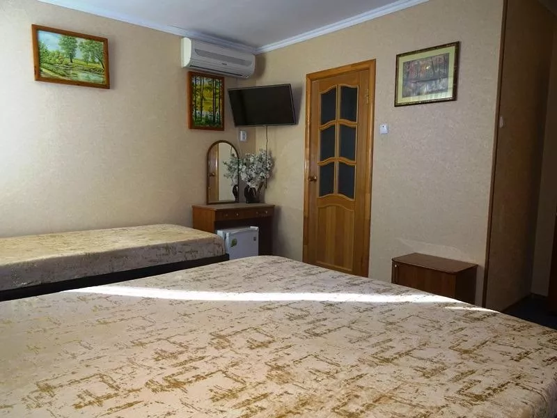 Мебель: двуспальная кровать, шкаф, стулья, прикроватные тумбочки, туалетный столик, зеркало. Удобства: сплит-система, телевизор, интернет.