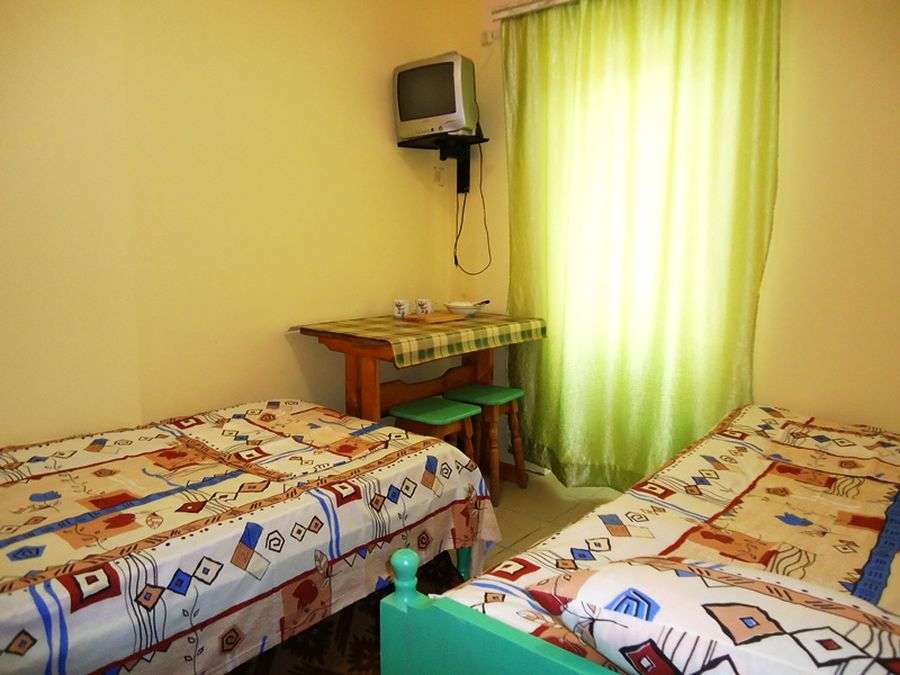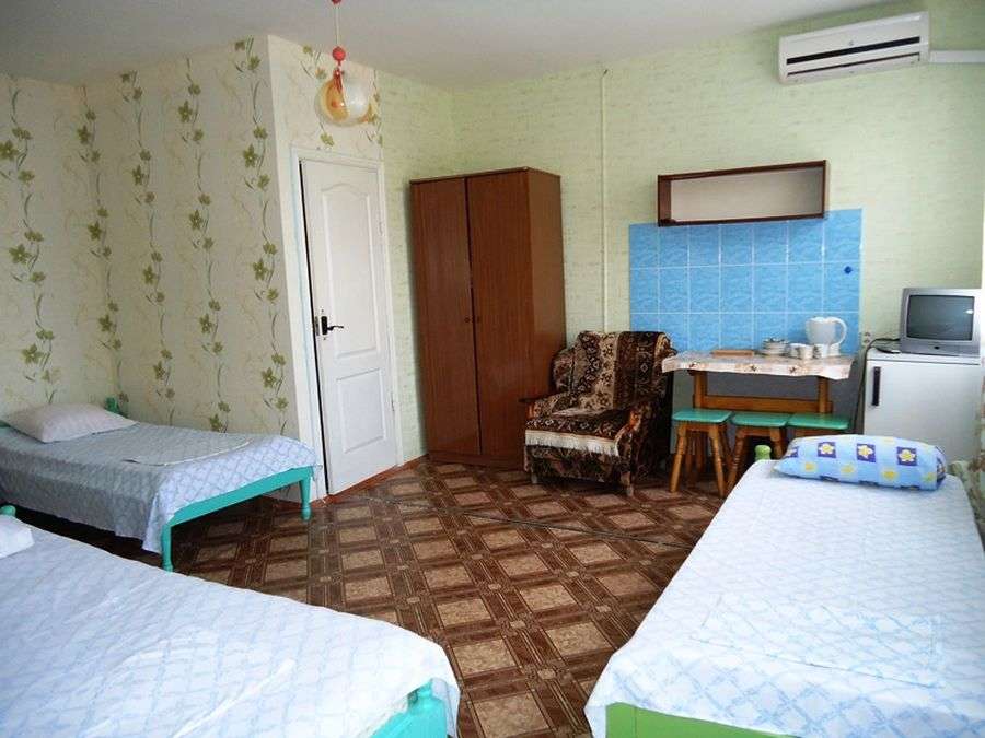 Мебель: односпальные или двуспальная кровати, шкаф, стулья, прикроватные тумбочки, стол, зеркало. Удобства: кондиционер или вентилятор, телевизор, холодильник, посуда.
