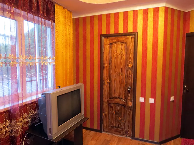 Наш гостевой дом предлагает номера повышенной комфортности - "полулюксы" 2х-, 3х- и 4х-местные, ещё два номера со всеми удобствами и своей кухней. Каждый номер отличается индивидуальным дизайном, интерьер которого не оставляет равнодушным ни одного нашего гостя. Все номера оборудованы кондиционерами, кабельным телевидением, доступом к бесплатному Wi-Fi интернету. Во всех номерах имеются санузлы, телевизор, холодильник, корпусная мебель. Кухни, расположенные на 1 и 3 этажах, оборудованы всем необходимым для приготовления и потребления пищи. Во дворе есть места для приятного времяпровождения: беседка со столиками, большой функциональный мангал, пруд с черепахами и рыбками, для детей есть игровая зона с качелями и скалодромом.Парковка возле дома бесплатная, платная в 200 метрах от дома. От нашего дома можно совершить пешие прогулки до Крабового ущелья, Свирского ущелья (есть такие достопримечательности), до висячего моста на речке.