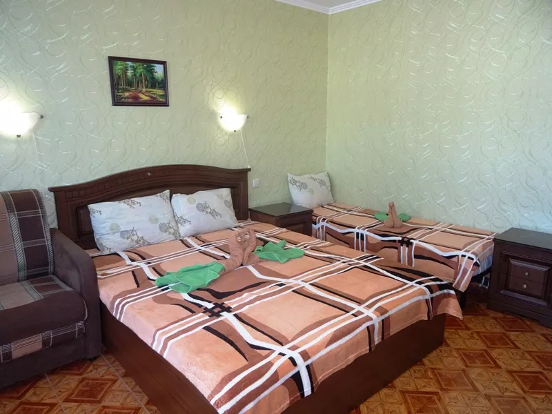 Номерной фонд гостевого дома позволяет подобрать удачный вариант для любого постояльца. У нас созданы отличные условия для семейного отдыха. Ведем предварительную запись на бронирование. Бронь-предварительная оплата за 2 дня проживания, которая учитывается при полном расчете, но не возвращается в случае отказа. Бесплатный интернет.