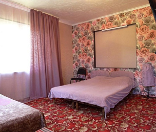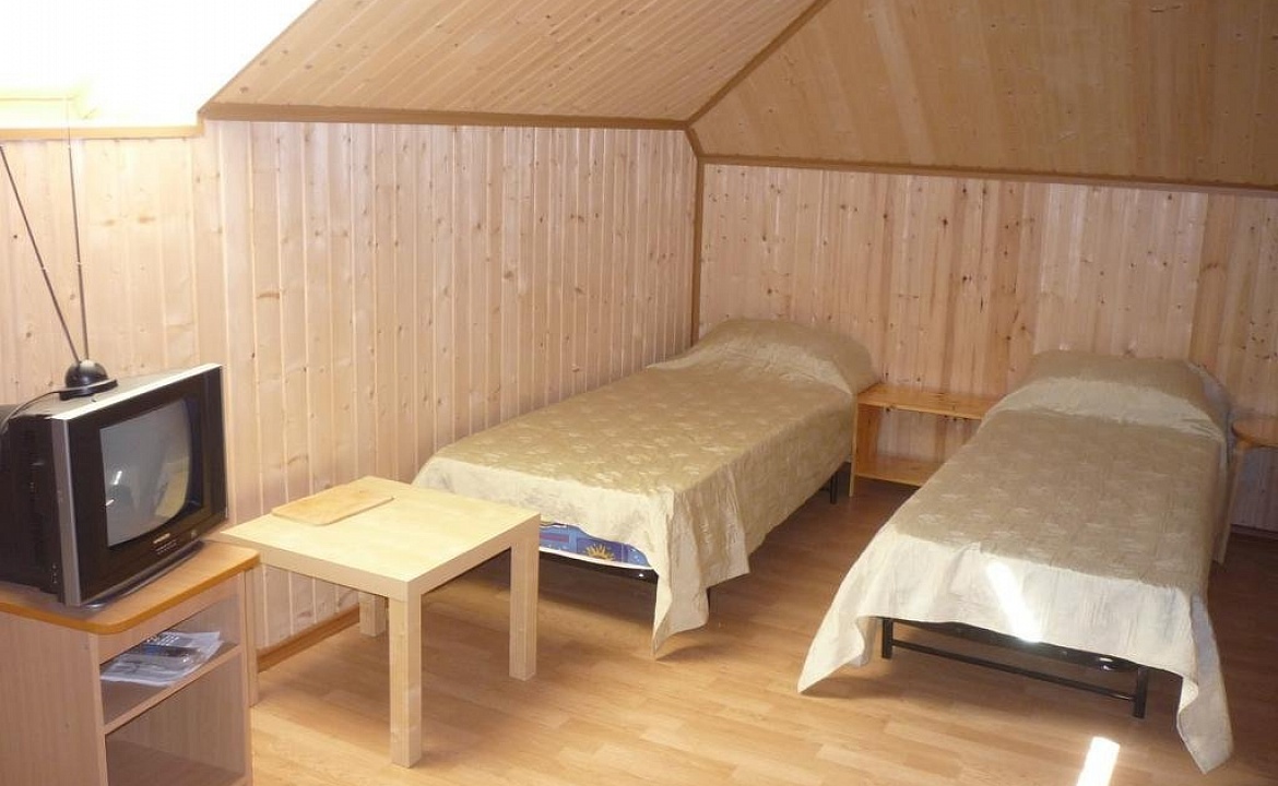 Мебель: односпальные или двуспальная кровати, кресло-кровать, шкаф, стулья, кресла, журнальный столик, зеркало. Удобства: сплит-система, телевизор, холодильник, интернет.