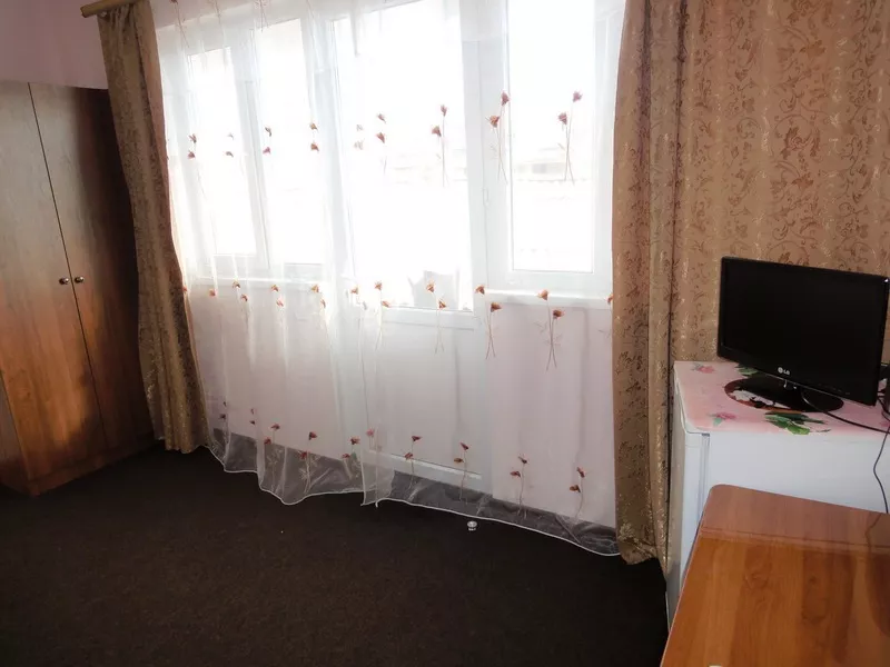Мебель: односпальные или двуспальная кровати, шкаф, стулья, прикроватные тумбочки, журнальный столик. Удобства: сплит-система, телевизор, холодильник, эл. чайник, балкон.