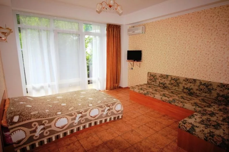 Мебель: двуспальная кровать, 2 дивана, шкаф, стулья, прикроватные тумбочки, журнальный столик. Удобства: сплит-система, телевизор, холодильник, фен, посуда, балкон. Комнат 1-2.