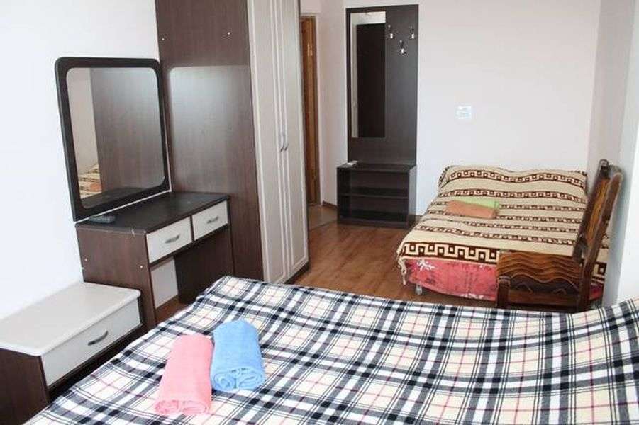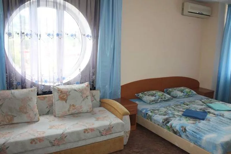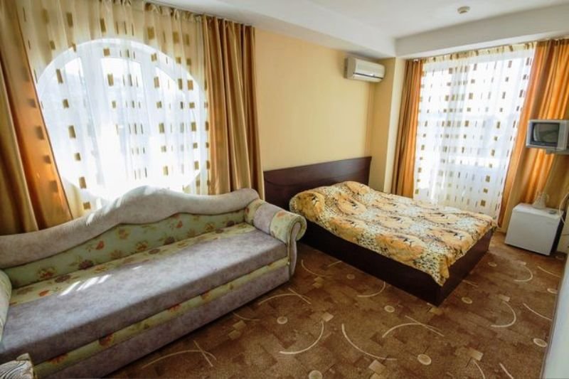 В отеле 5 этажей, 28 номеров: 2х-, 3х-, 4х-местные, 2х-комнатные на 3−4 человека и номера "Люкс" (40 кв.м.) на 3−4−5 человек. Наш отель расположен в центральной части п. Лазаревское. До моря 7 -10 мин. прогулочным шагом мимо столовых, отделов со сладостями, продуктовых и сувенирных лавок. По пути на море не нужно переходить железнодорожные пути и федеральную трассу. У нас 2 пляжа: Центральный и пляж Багратион (в Лазаревском все пляжи бесплатные!). Оба пляжа оборудованные: зонтики, шезлонги, аэрарий, множество лавок с пляжными принадлежностями. В шаговой доступности вас ждут развлекательные центры, бары и рестораны, причал с яхтами и теплоходами для морских прогулок. Рядом центральный рынок (через дорогу) и площадь с фонтанами. Развлечься с детьми вы сможете в парке Культуры и отдыха (5 мин. ходьбы), где расположено масса веселых аттракционов и самое большое в России колесо обозрения. В нашем отеле работает приветливый персонал. Вас встретит администратор и поможет разместиться, ответит на все интересующие Вас вопросы. На 1 этаже отеля - большой красивый холл, где Вы можете отдохнуть под кондиционером, посмотреть телевизор, полистать газеты и журналы, отведать домашнего вина собственного производства. Также на 1 этаже находится кухня со всей необходимой посудой и техникой для самостоятельного приготовления пищи. Наличие столиков - как на самой кухне, так и на территории двора. У нас есть мангал! Наши гости могут воспользоваться мини-парковкой бесплатно!