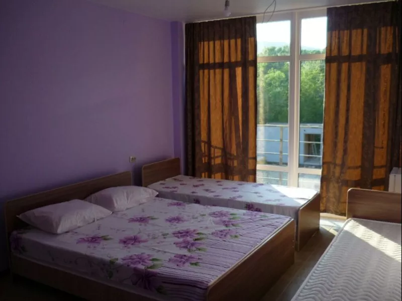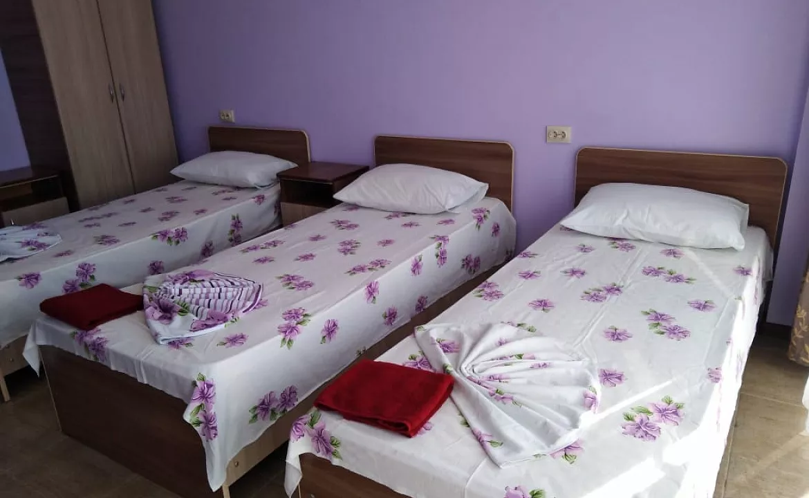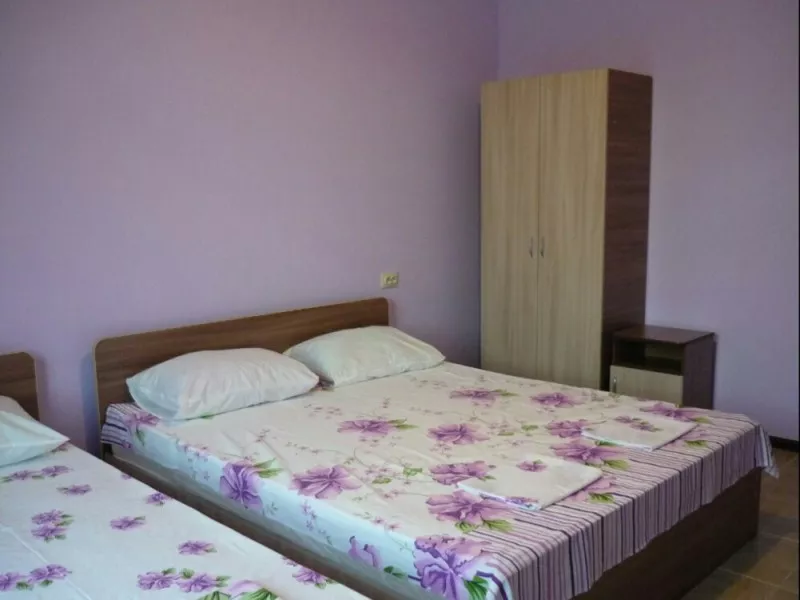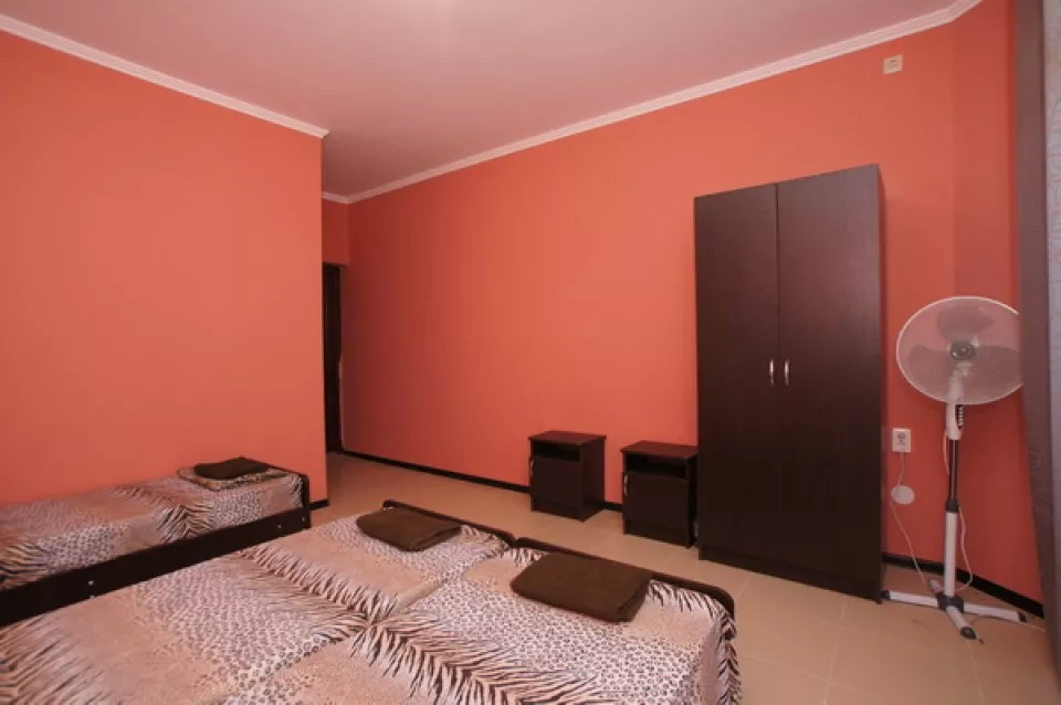 Для путешествующих на автомобилях предусмотрена бесплатная парковка. Предоставляется возможность готовить самостоятельно на полностью оборудованной кухне с холодильником и микроволновой печью. Центральный пляж находится в 300 метрах от гостевого дома, где действует прокат пляжного снаряжения (шезлонги, зонты), множество аттракционов, гидроциклы. В шаговой доступности: аквапарк, супермаркеты, рынки, сувенирные лавки, кафе, бары, столовые, рестораны, аптеки. Номерной фонд представляет собой 27 2х-, 3х- и 4х-местных просторных номеров. Во всех номерах: ЖК-телевизор со спутниковыми каналами, холодильник, журнальный столик, кондиционер, собственная ванная комната. К услугам гостей: - площадка для отдыха - мангал - пользование гладильной доской - организация экскурсий в горы, аквапарки, дельфинарии. и многое другое. - расчетный час: выезд 10:00, заезд - 12:00.- пляж песчаный - 2-3 минуты