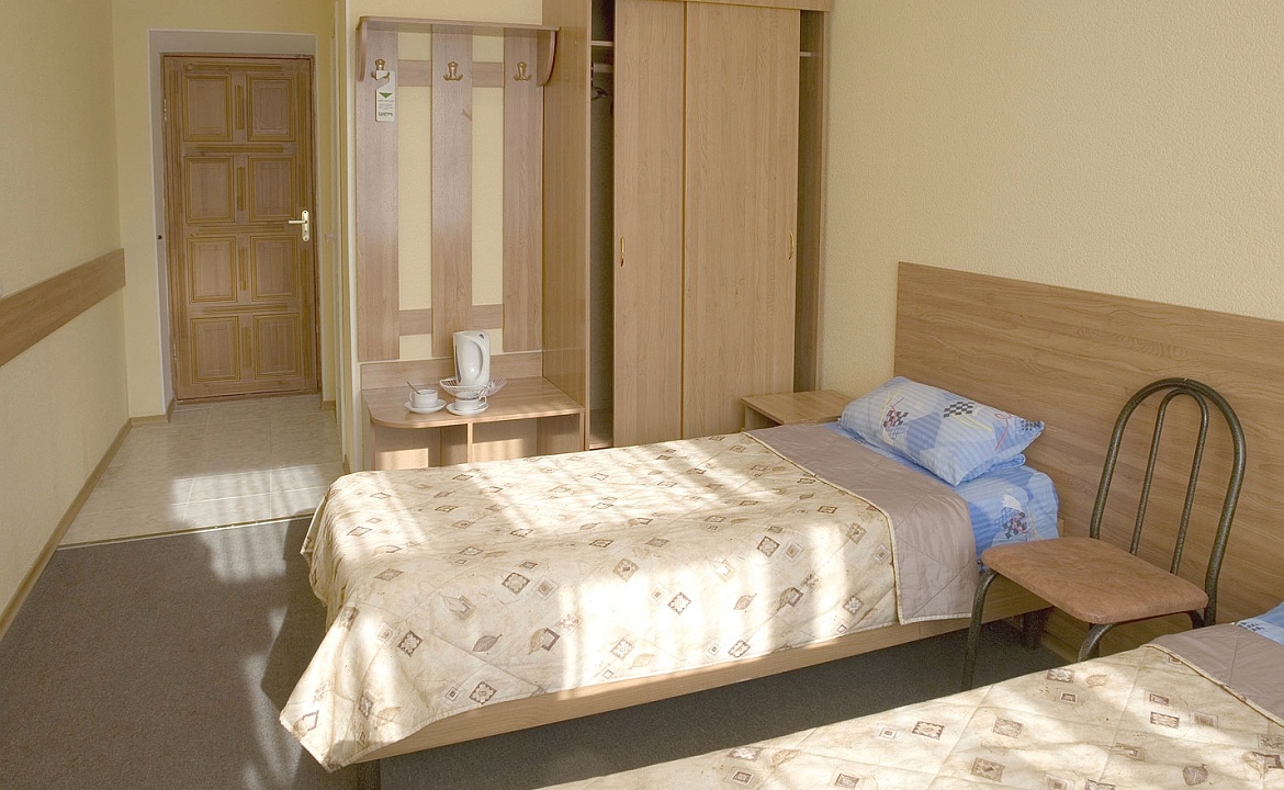 Здание отеля расположено напротив аквапарка «Черномор» и в 300 м. от моря. Номера люкс представляют собой две комнаты, прихожую, большой санузел и 6-м. балкон; укомплектован двуспальной кроватью, телевизором, холодильником, набором мягкой мебели, платяной шкаф, шкаф-бар с посудой. Из комнаты выход на балкон. Двухместный номер представляет собой одну комнату, прихожую, санузел с душевой, 3-м. балкон; укомплектован двуспальной кроватью, холодильником, телевизором. Каждый балкон укомплектован сушилкой для белья. Все здание отеля оборудовано единой канальной системой кондиционирования. На первом этаже отеля расположен кафе, площадью 150 м², салон красоты. Каждый желающий сможет поправить свое здоровье или просто отдохнуть и набраться свежих сил, посетив лечебно-профилактическую сауну «Кедровая здравница». К услугам отдыхающих также работа термо терапевтического массажера-стимулятора, который помимо массажа обладает функциями точечного прогревания и инфракрасного излучения.