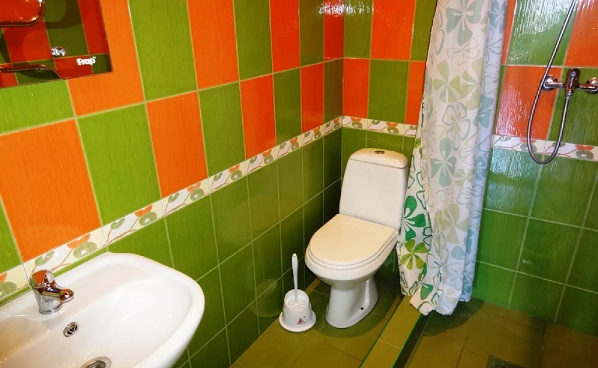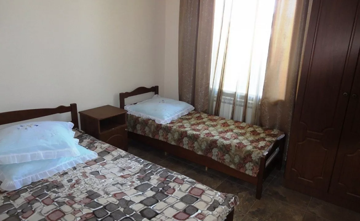 В номере: односпальные или двуспальная кровати,кресло-кровать, шкаф, стулья, прикроватные тумбочки, зеркало, душ и туалет на этаже, кондиционер, телевизор, балкон (наличие уточняйте).