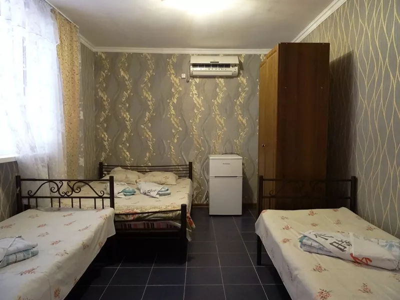Гостевой дом находится в спокойном районе, в 7 минутах от моря, на одной из основных улиц курортного посёлка, откуда можно быстро, неспеша дойти до центра, чистейшего мелко-галечного пляжа и набережной с множеством развлекательных заведений, кафе и ночных клубов!К услугам отдыхающих предлагаются трех и четырехместные номера со всеми удобствами. В номерах: необходимая мебель, сплит-система, телевизор, душ, туалет. Готовить можно самостоятельно на оборудованной кухне или питаться в столовой, находящейся в двух шагах от дома.На территории: уютный зелёный дворик, много цветов, есть круглый бассейн, беседка, мангал, детская площадка, автостоянка, функционирует Wi-Fi.