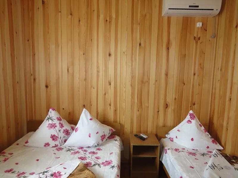 В номерах: необходимая мебель, сплит-система, телевизор, душ, туалет. Готовить можно самостоятельно на оборудованной кухне .