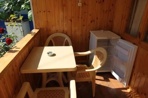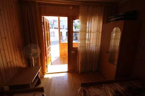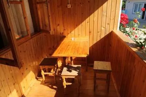 Отдельно стоящий деревянный домик с балконом и отдельным входом. Душ и туалет общие во дворе. Идеально подходит для любителей недорого отдыха.