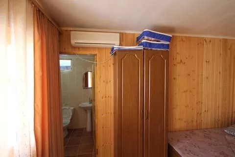 Отдельно стоящий деревянный домик с балконом и отдельным входом. В номере: односпальные или двуспальная кровати, диван-кровать, кресло-кровать, шкаф, стулья, журнальный столик, зеркало, кондиционер, телевизор, холодильник, балкон, душ, туалет.