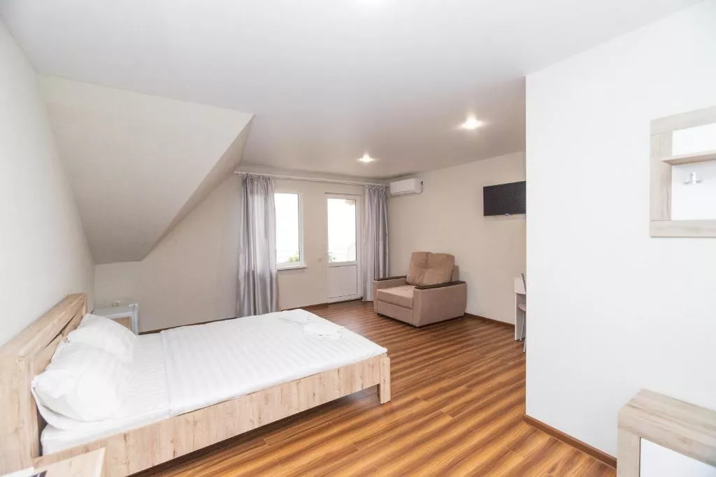 Удобства: шкаф, тумбочки, стулья, кровать двуспальная, кресло-кровать, кресло, стол, вешалка. Техника:телевизор, цифровое ТВ, холодильник, Wi-Fi интернет, кондиционер, фен.