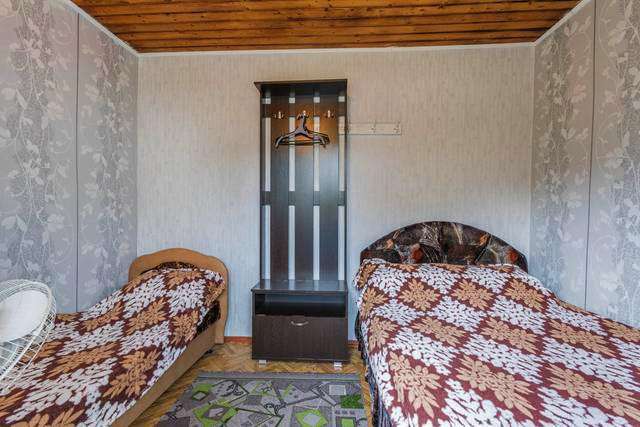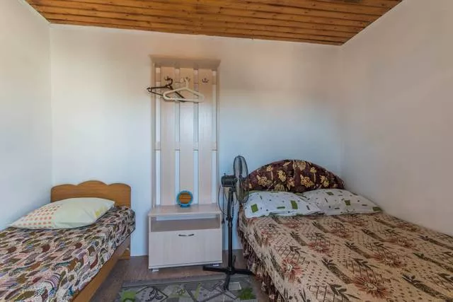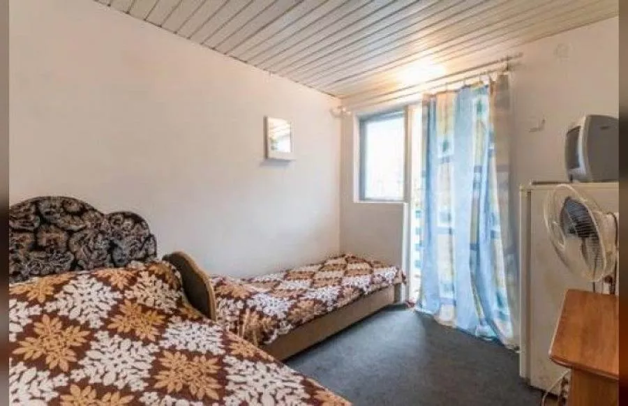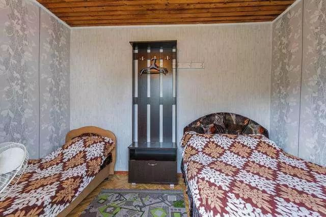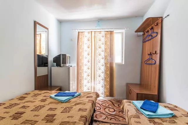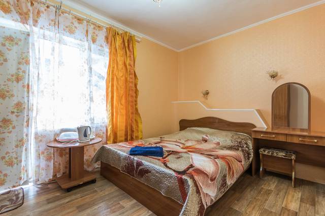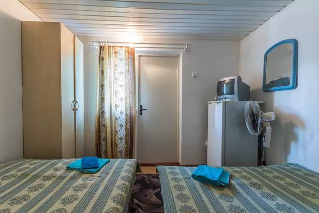 Мебель: односпальные или двуспальная кровати, прикроватные тумбочки, вешалка, зеркало. Удобства: вентилятор.