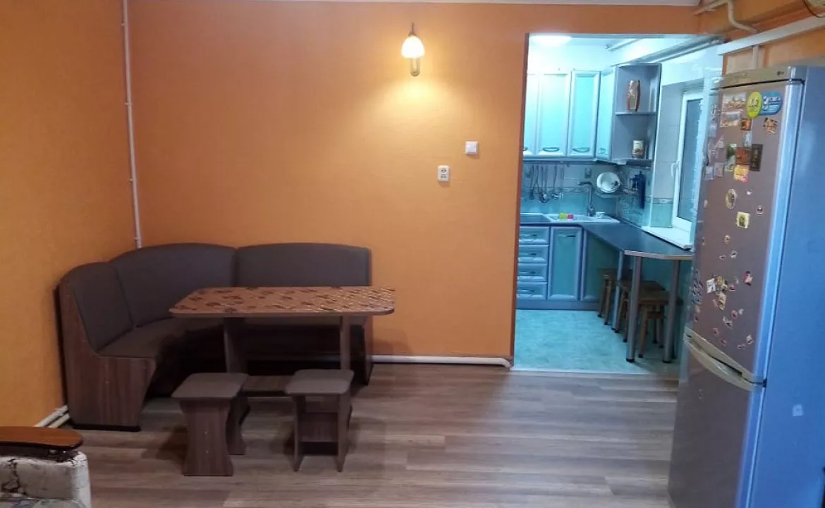 Мебель: двуспальные кровати, двуспальный диван, шкаф, стулья, прикроватные тумбочки, стол, трельяж, вешалка, обеденный стол и посудный шкаф (на балконе). Удобства: сплит-система, 2 телевизора, холодильник, кухня в холле (на 4 номера).