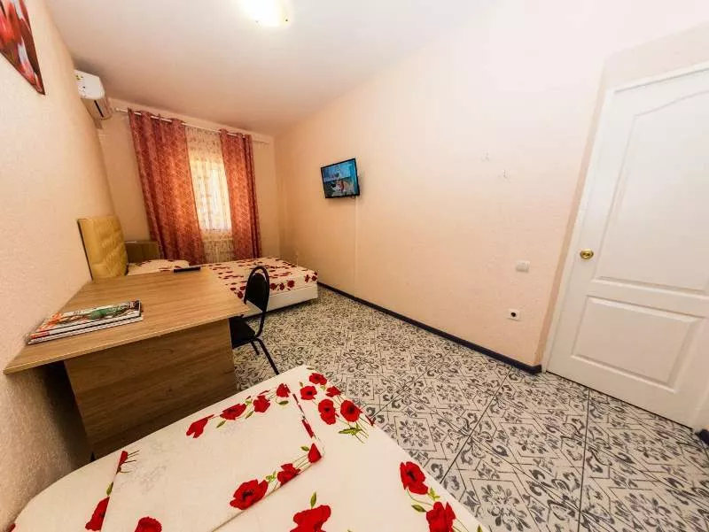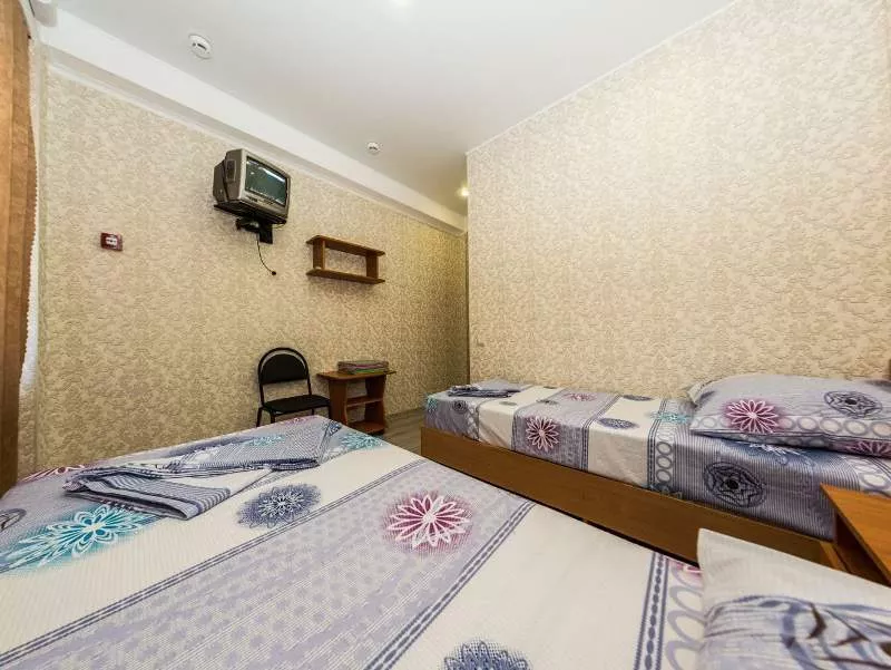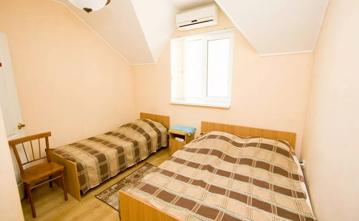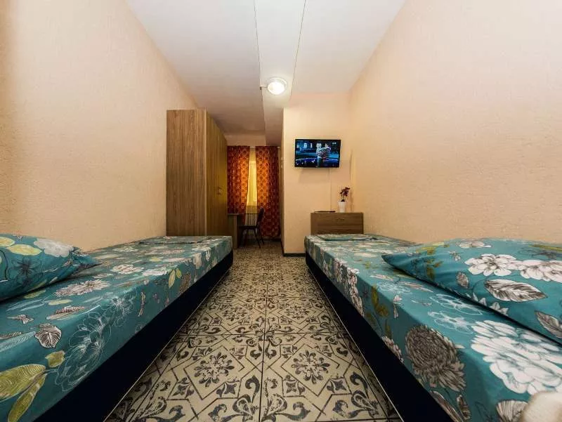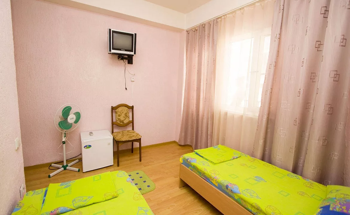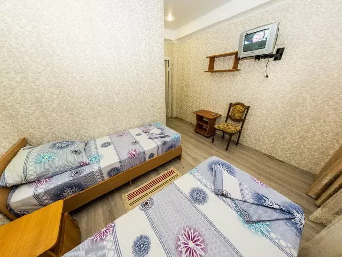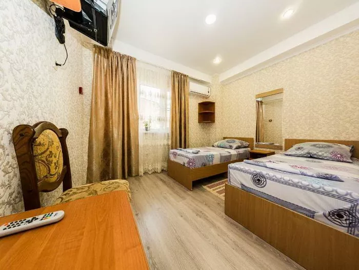 Мебель: односпальные кровати, стулья, шкаф, прикроватные тумбочки, журнальный столик, вешалка, зеркало. Удобства: сплит-система, холодильник, телевизор, Wi-Fi интернет.