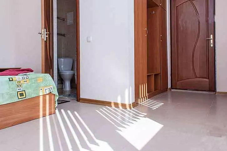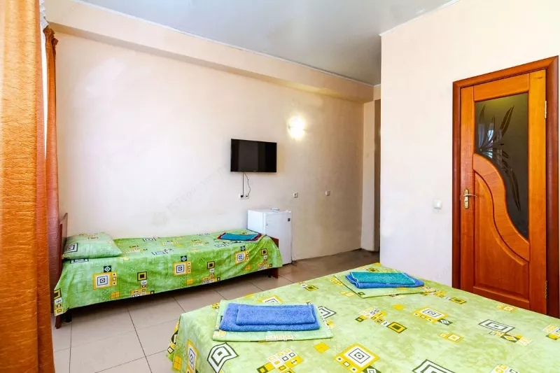 Тихие, уютные, просторные комфортабельные 2х, 3х, 4х и 5-местные номера площадью 18-22 м2, со всеми удобствами. В каждом номере: холодильник, телевизор (спутниковое ТВ), сплит-система, на 2 и 3 этажах балкон (или эркер), санузел (душ, раковина, туалет), мебельный гарнитур.